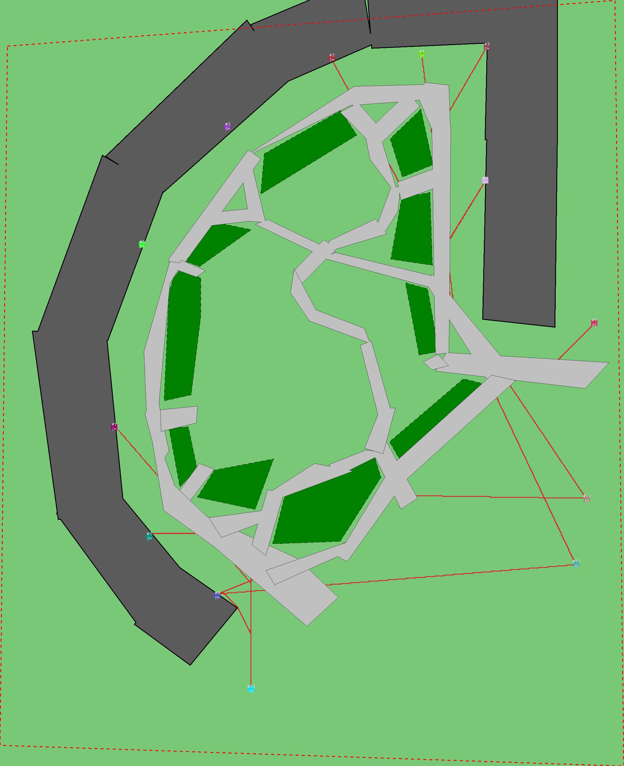 Красным цветом показаны места, где, вероятнее всего, появятся стихийные тропы..