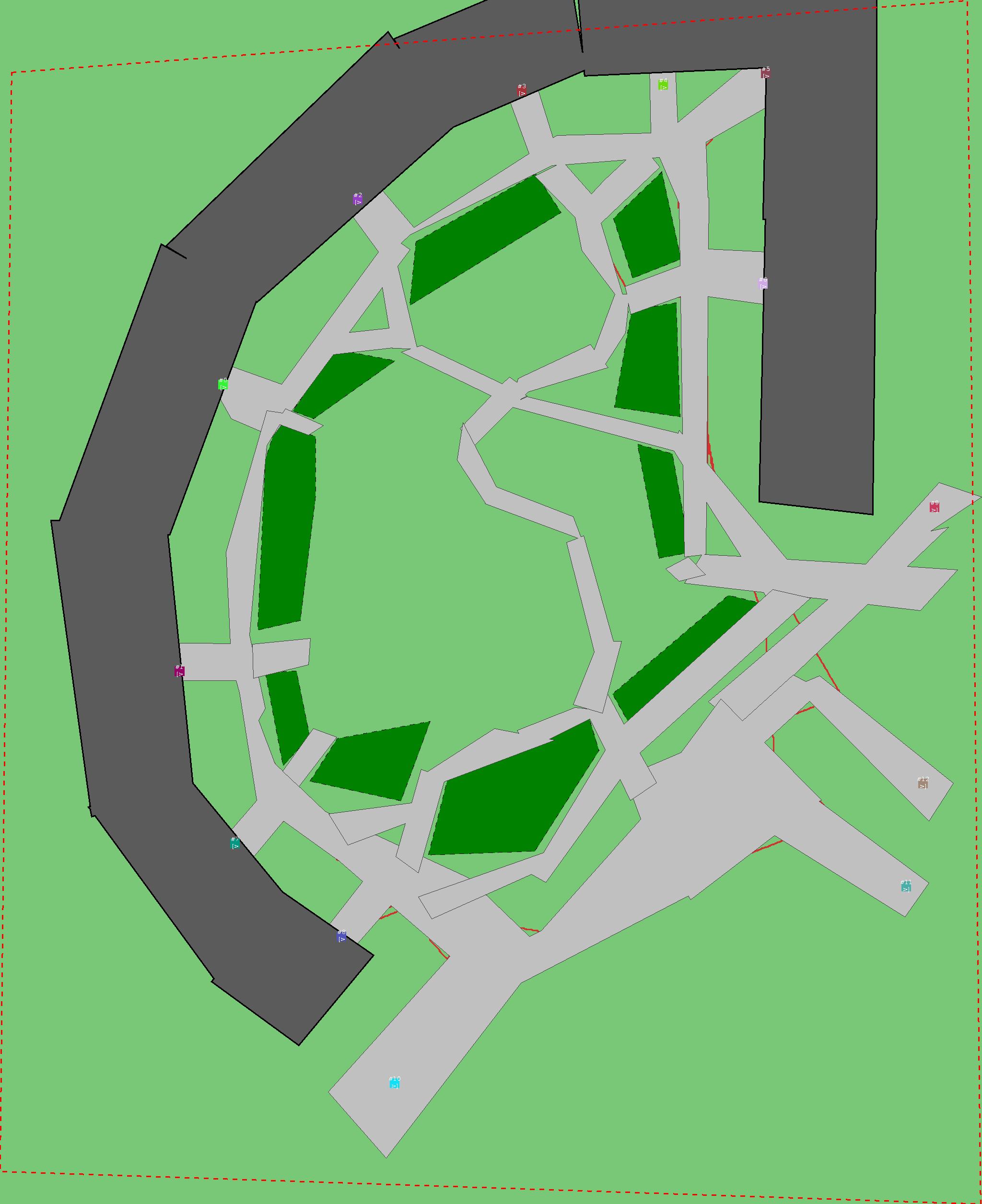 Красным цветом показаны места, где, вероятнее всего, появятся стихийные тропы..