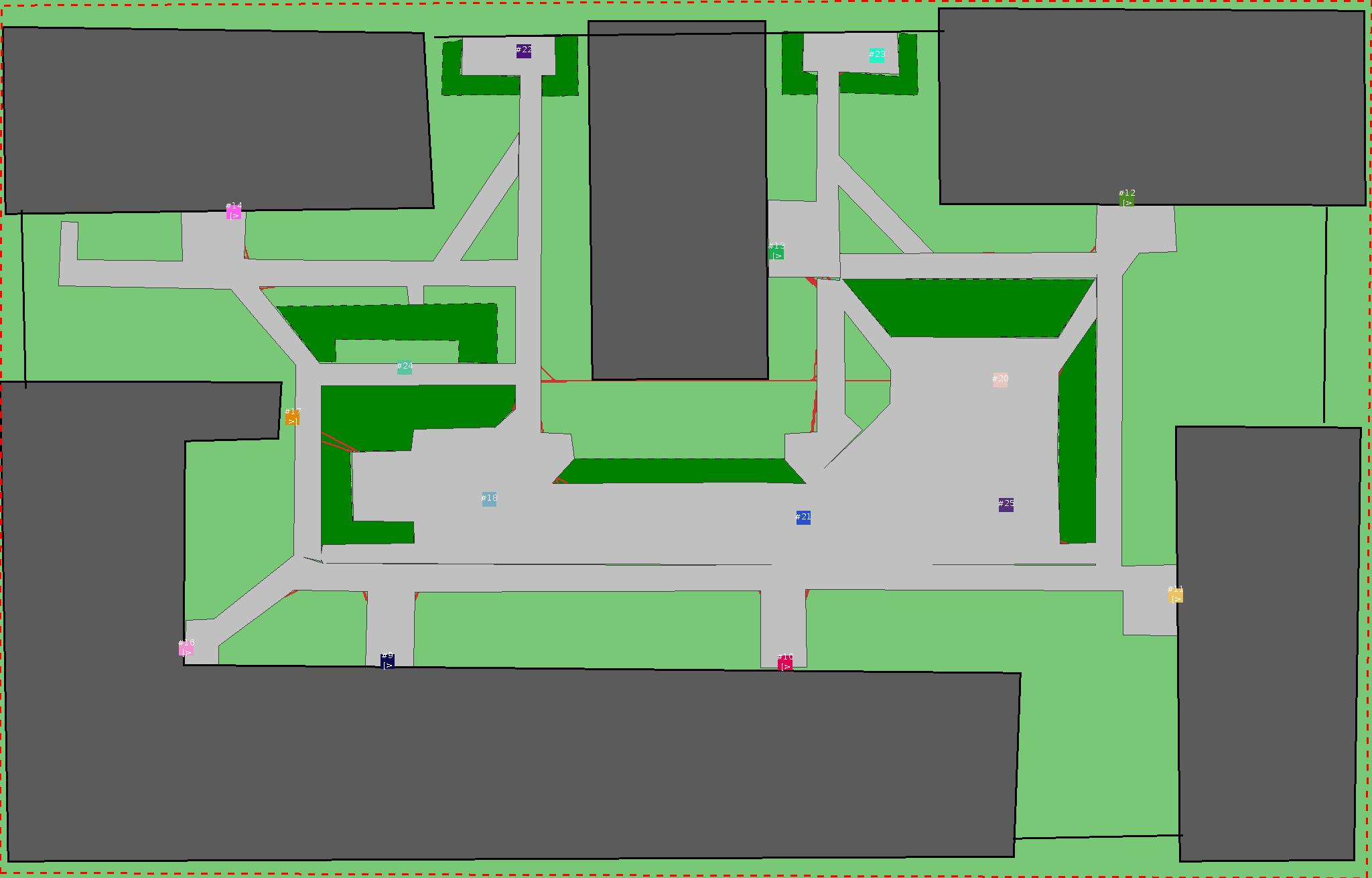 Красным цветом показаны места, где, вероятнее всего, появятся стихийные тропы..