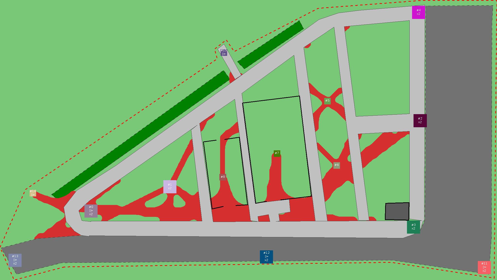 Красным цветом показаны места, где, вероятнее всего, появятся стихийные тропы..