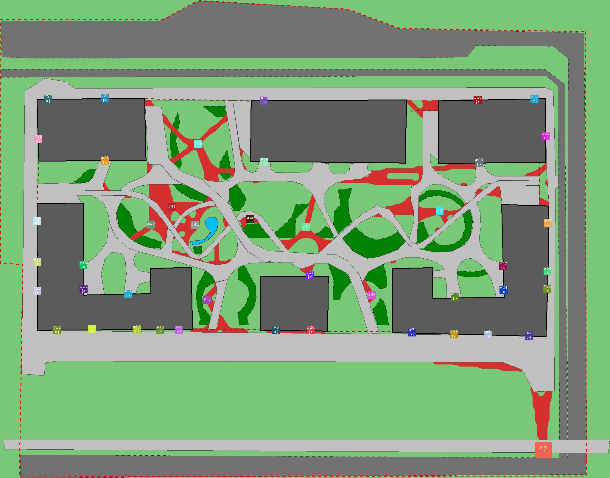 Красным цветом показаны места, где, вероятнее всего, появятся стихийные тропы..