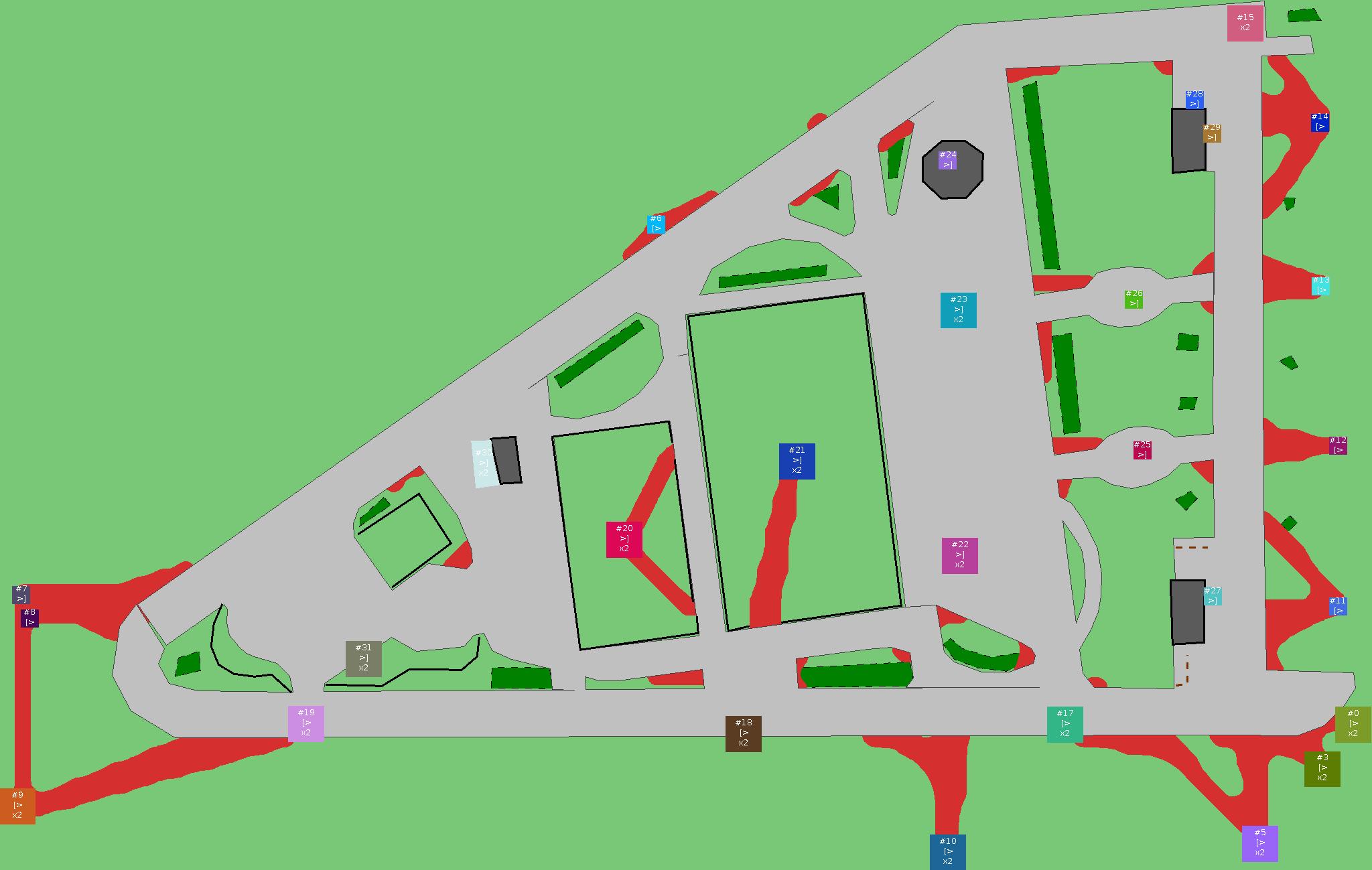 Красным цветом показаны места, где, вероятнее всего, появятся стихийные тропы..