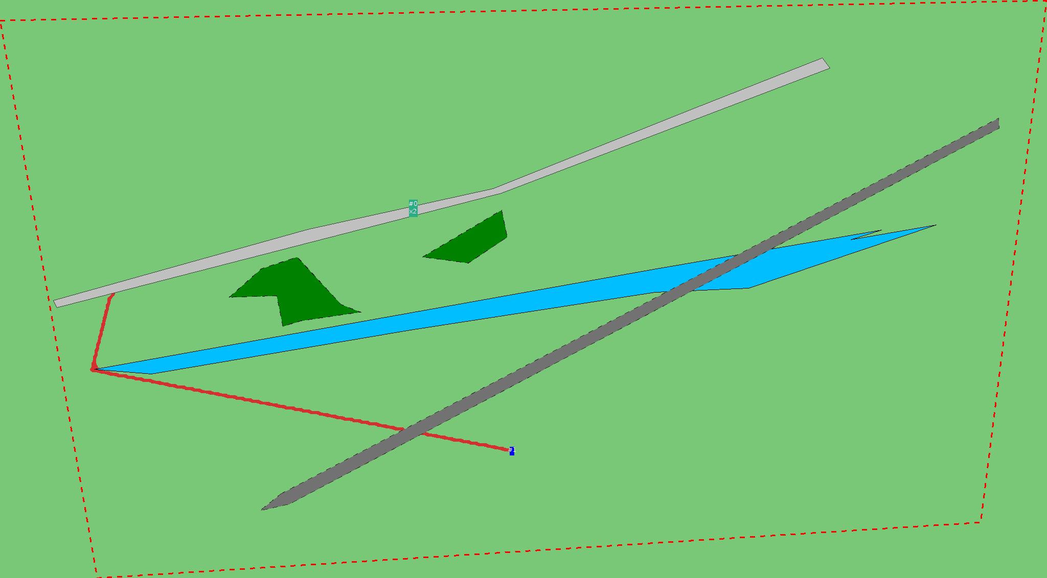 Красным цветом показаны места, где, вероятнее всего, появятся стихийные тропы..