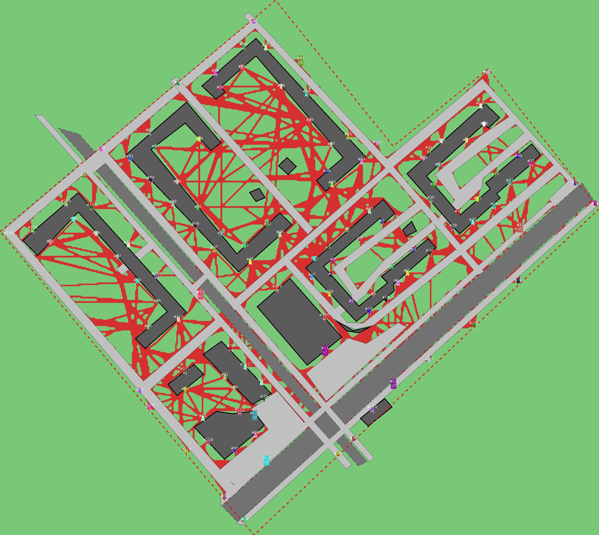 Красным цветом показаны места, где, вероятнее всего, появятся стихийные тропы..