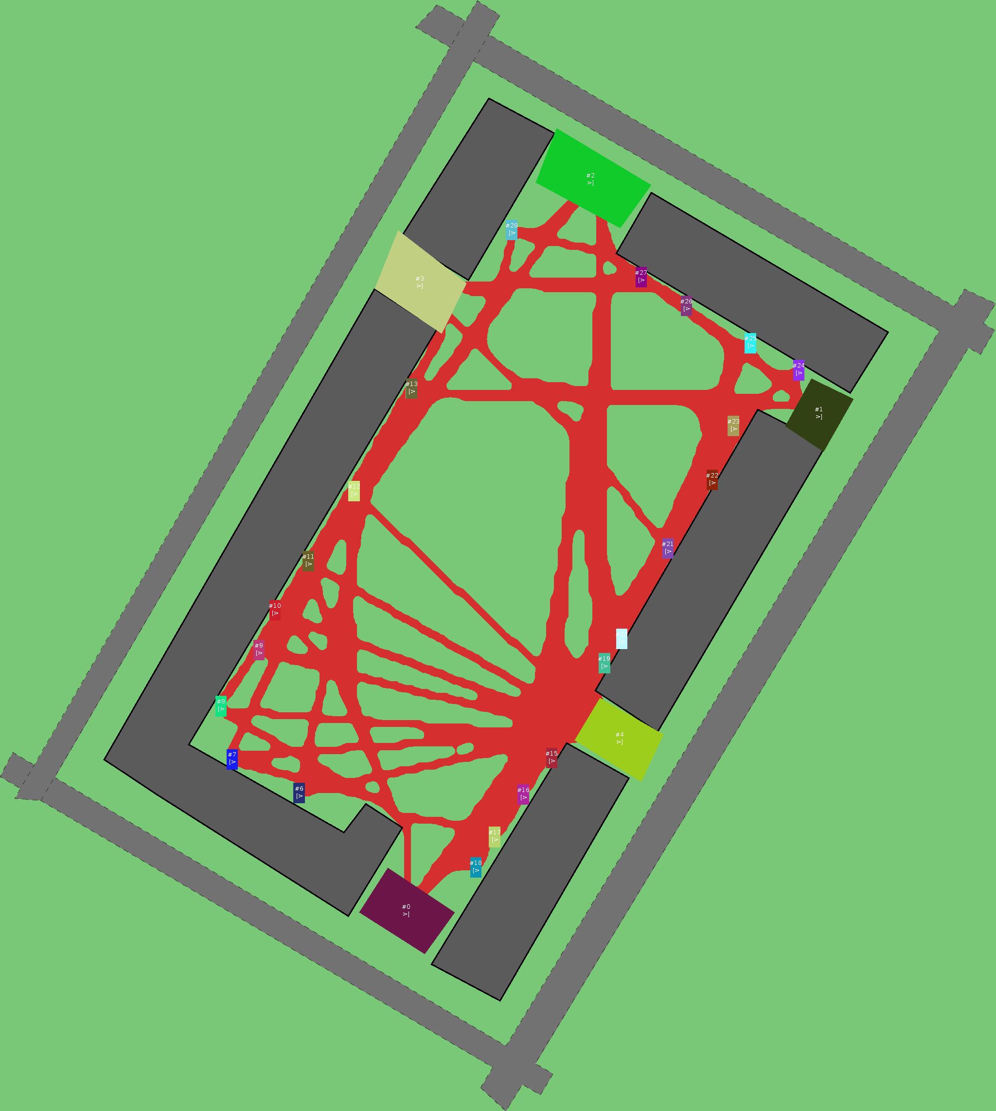 Красным цветом показаны места, где, вероятнее всего, появятся стихийные тропы..