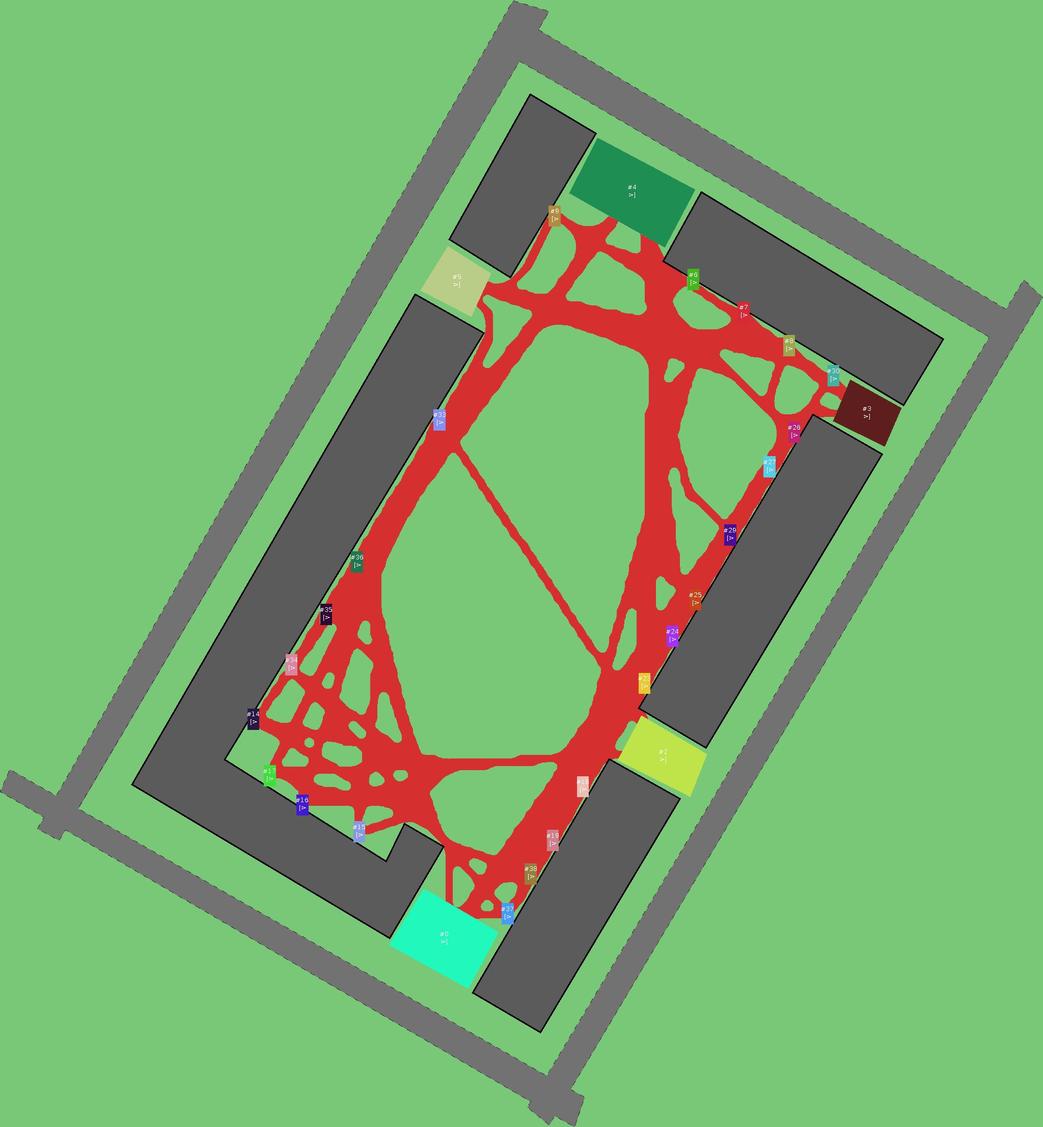 Красным цветом показаны места, где, вероятнее всего, появятся стихийные тропы..
