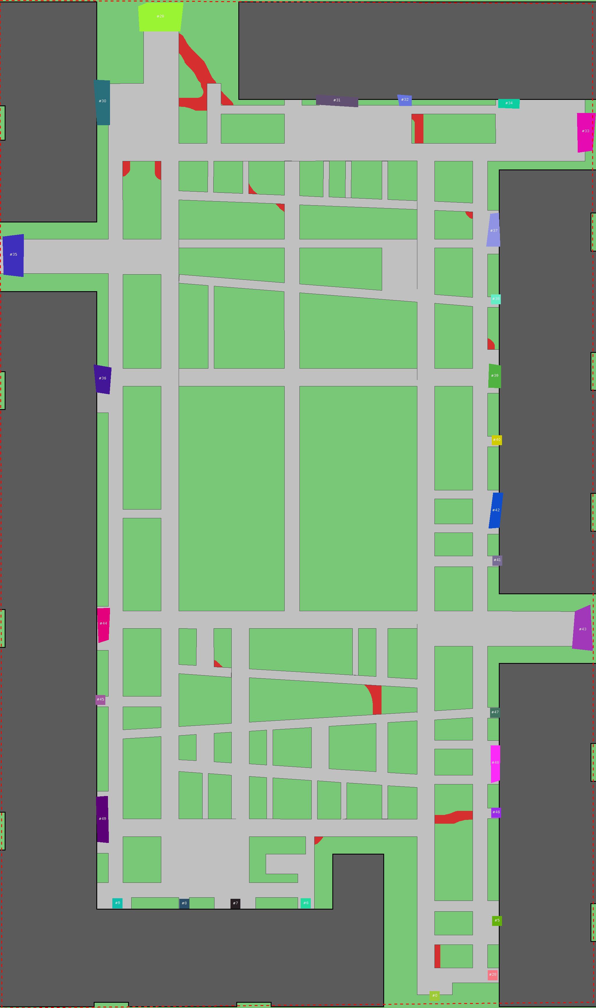 Красным цветом показаны места, где, вероятнее всего, появятся стихийные тропы..