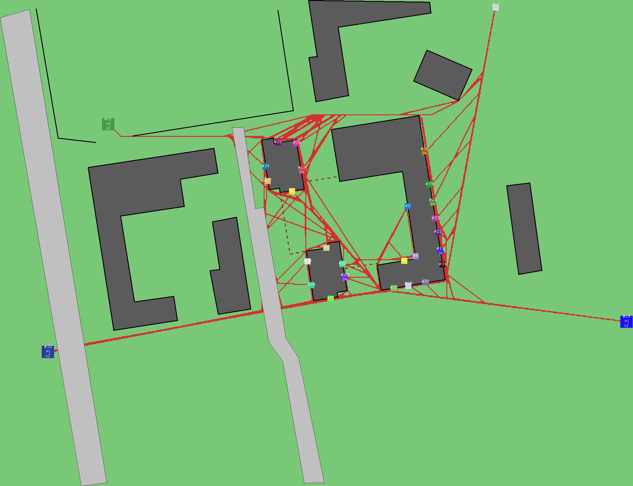 Красным цветом показаны места, где, вероятнее всего, появятся стихийные тропы..