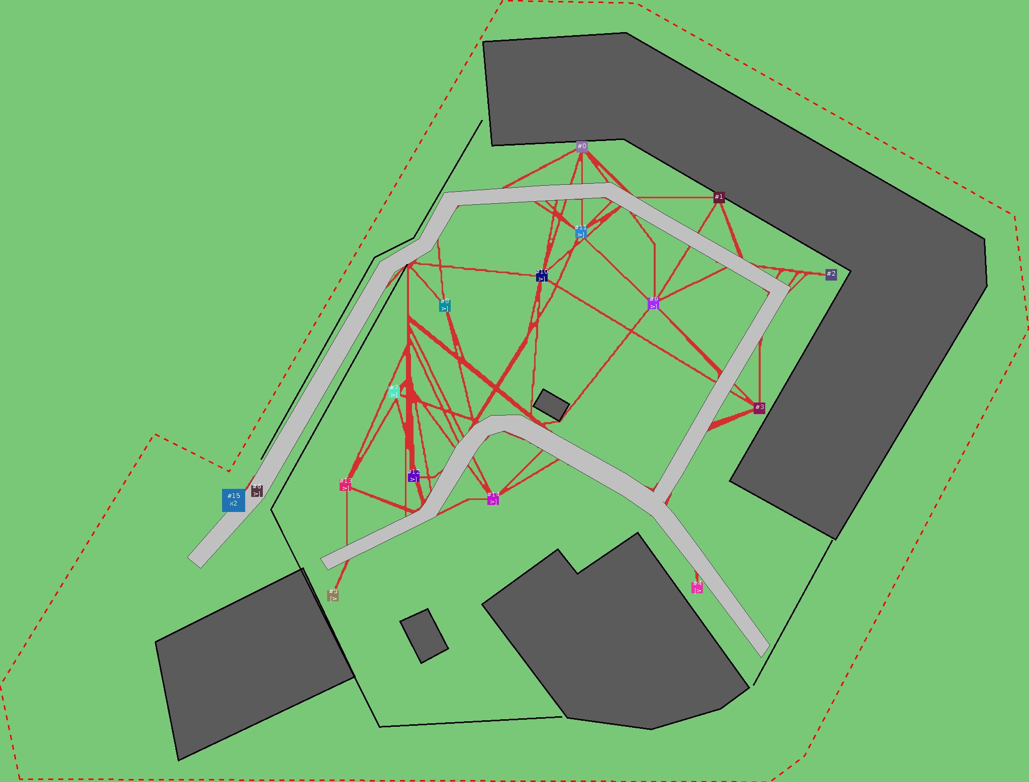 Красным цветом показаны места, где, вероятнее всего, появятся стихийные тропы..
