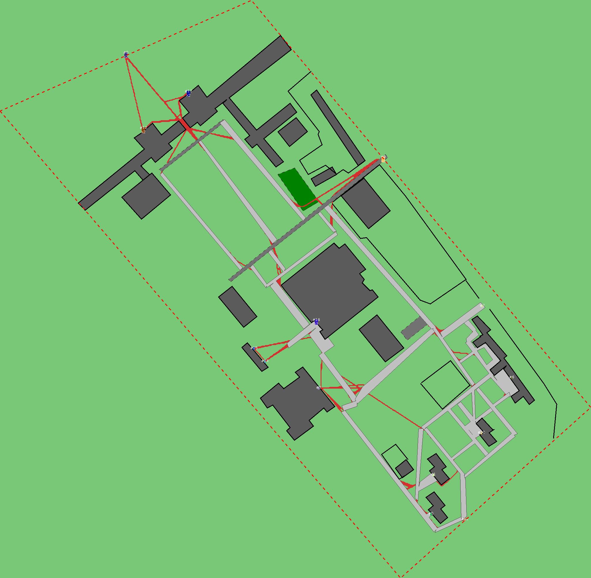 Красным цветом показаны места, где, вероятнее всего, появятся стихийные тропы..