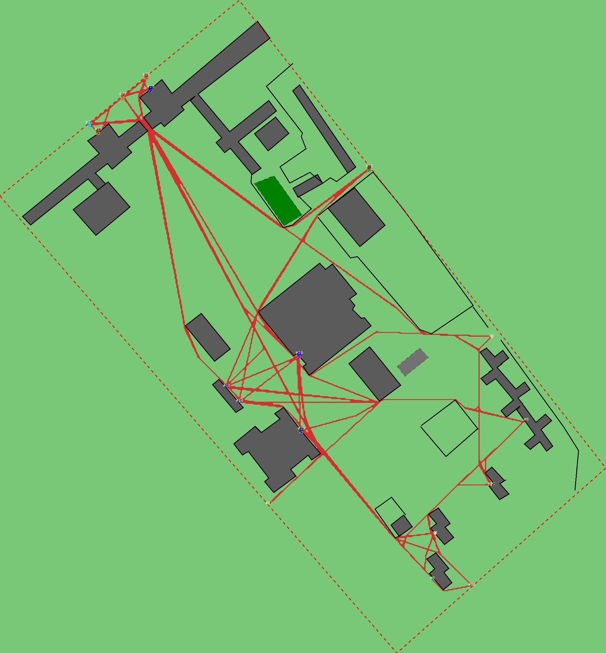 Красным цветом показаны места, где, вероятнее всего, появятся стихийные тропы..