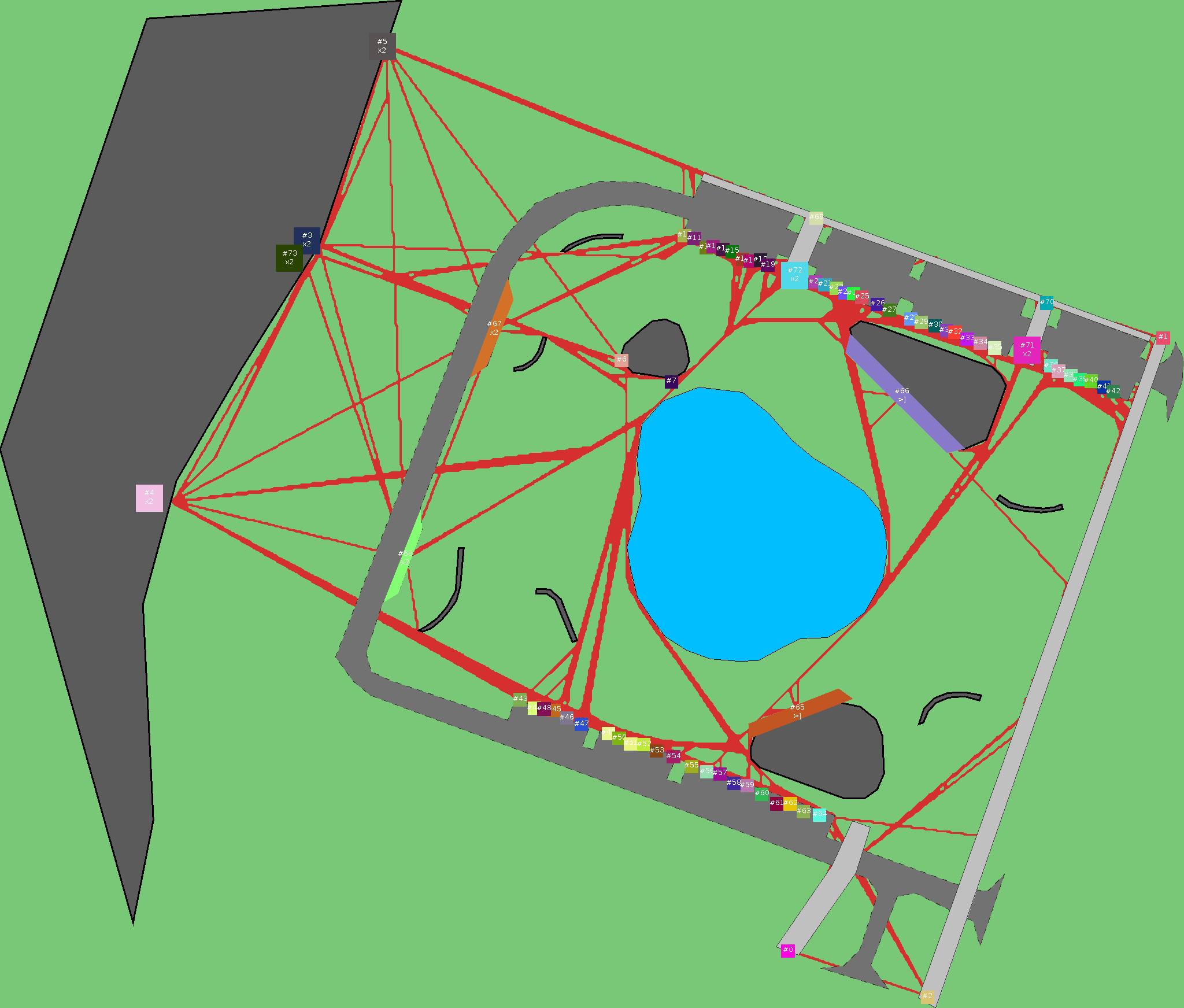 Красным цветом показаны места, где, вероятнее всего, появятся стихийные тропы..