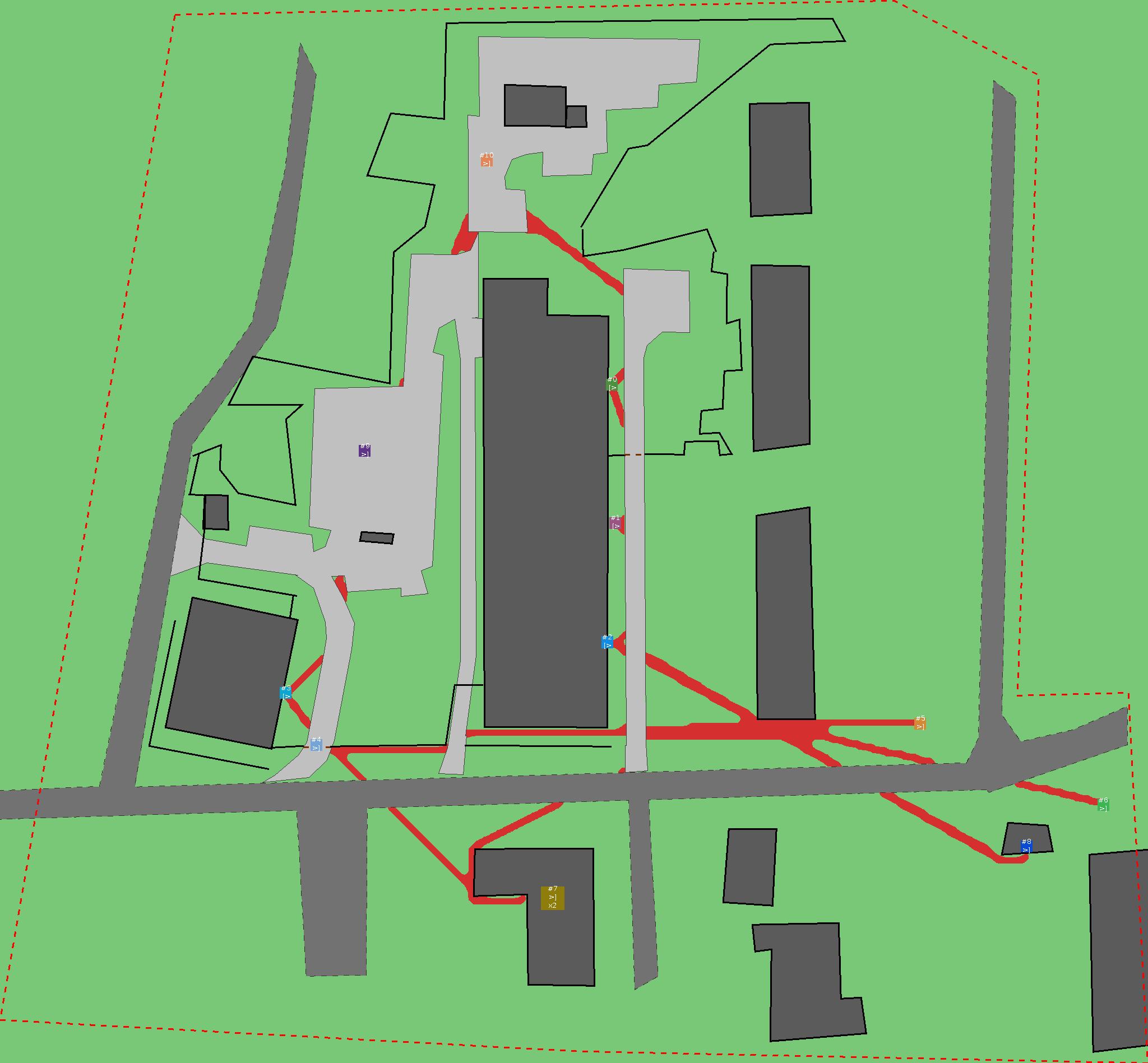 Красным цветом показаны места, где, вероятнее всего, появятся стихийные тропы..