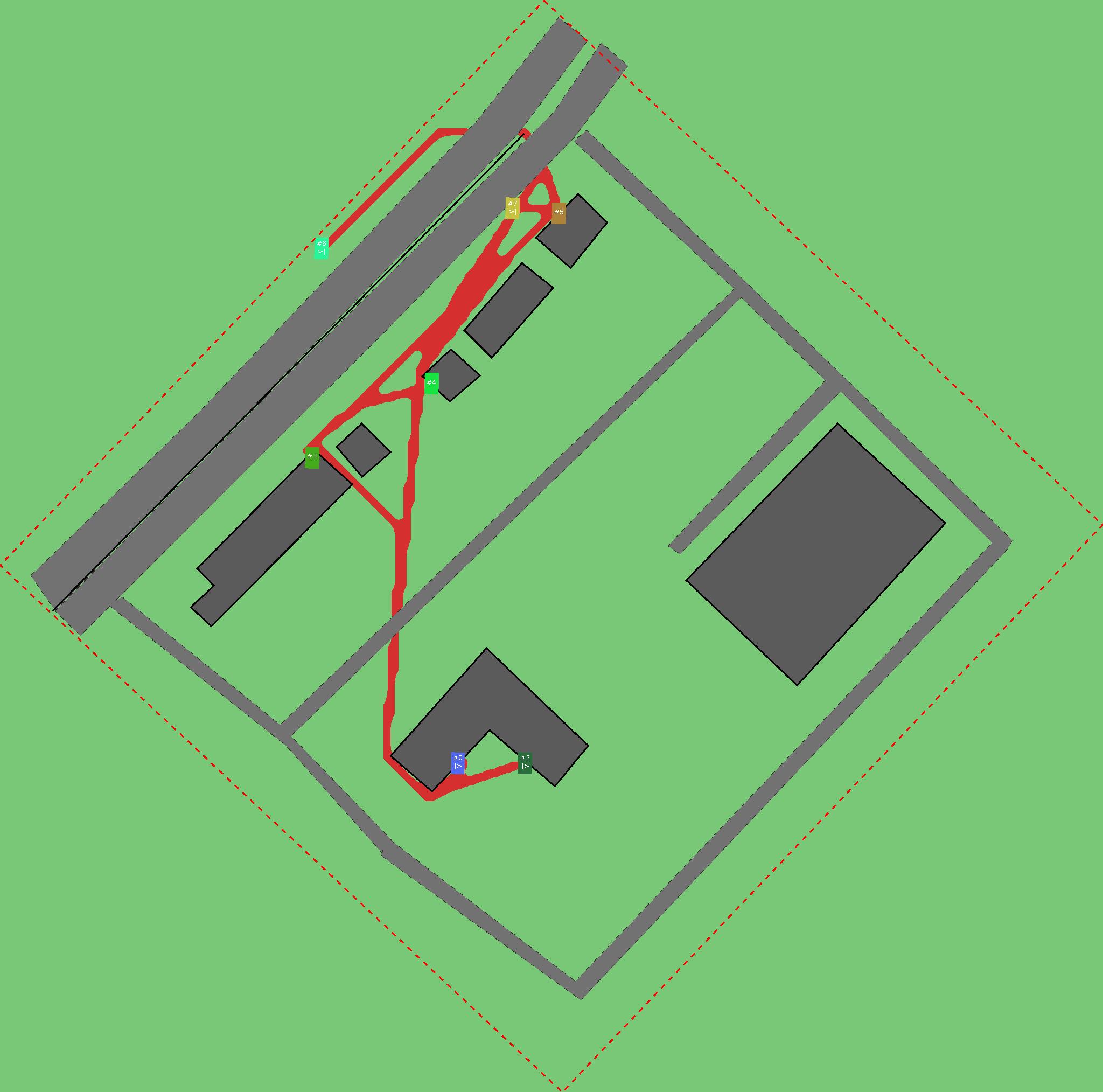 Красным цветом показаны места, где, вероятнее всего, появятся стихийные тропы..