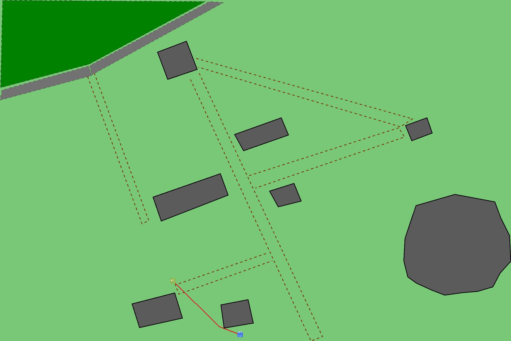 Красным цветом показаны места, где, вероятнее всего, появятся стихийные тропы..