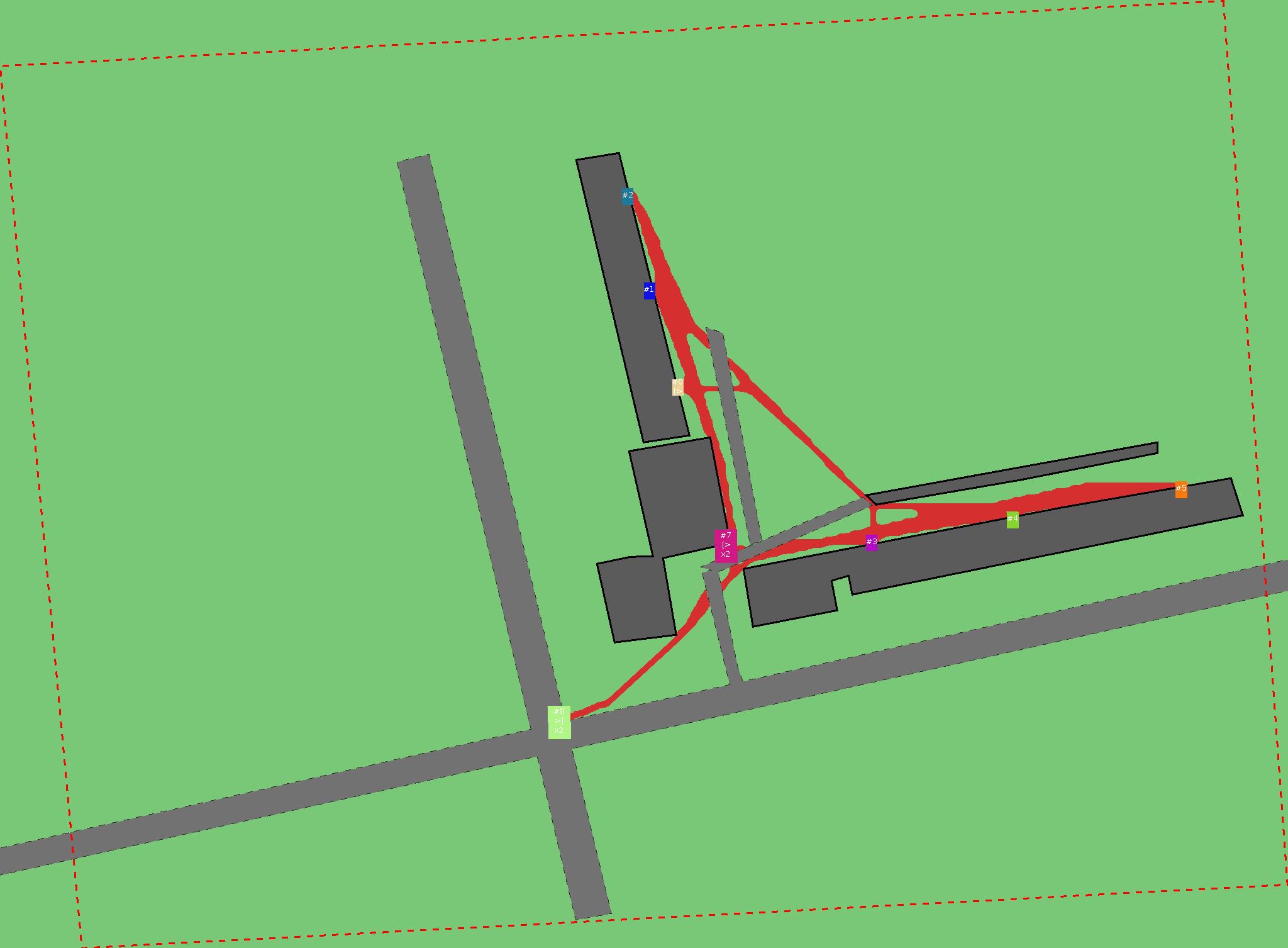 Красным цветом показаны места, где, вероятнее всего, появятся стихийные тропы..