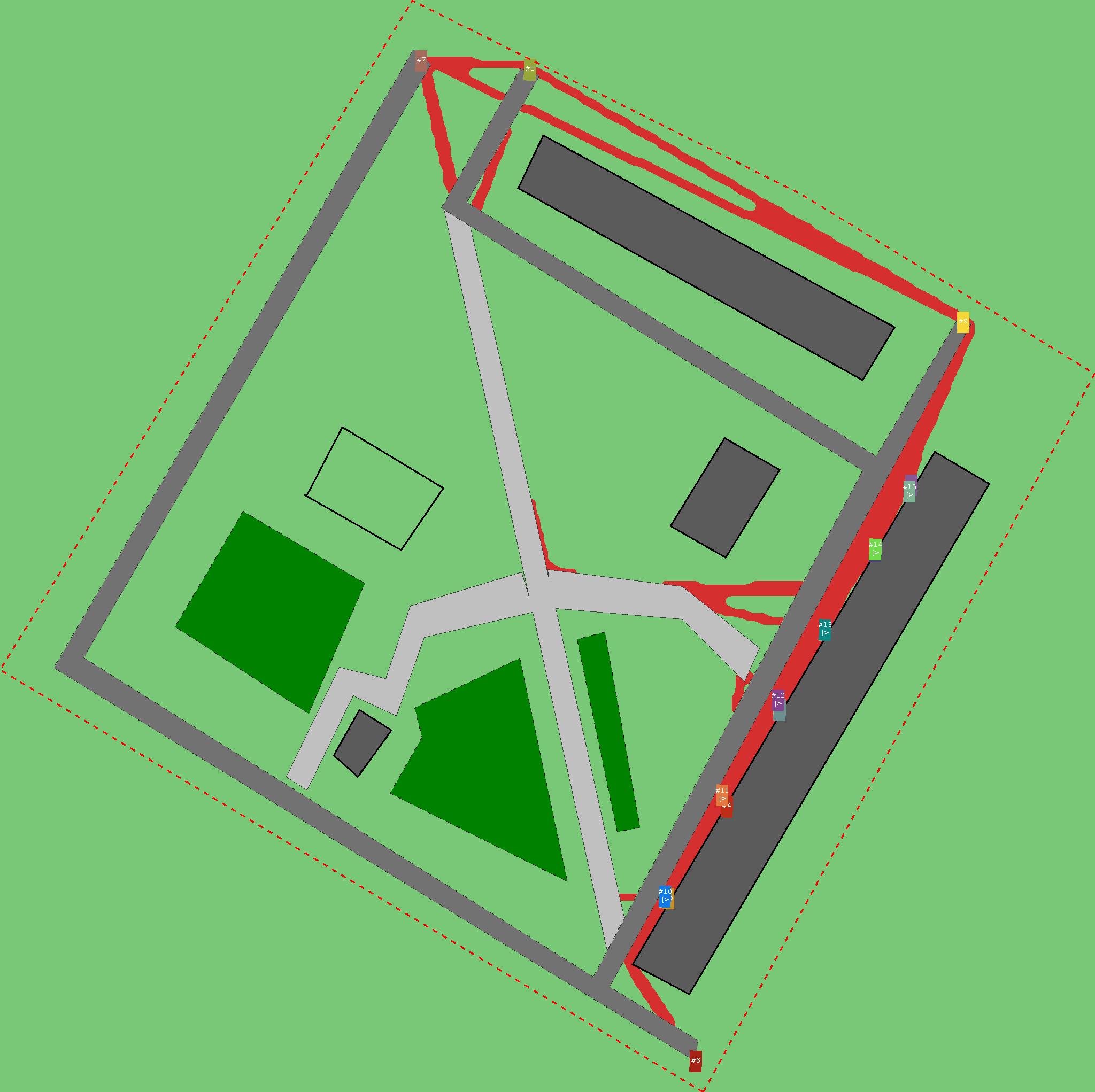 Красным цветом показаны места, где, вероятнее всего, появятся стихийные тропы..