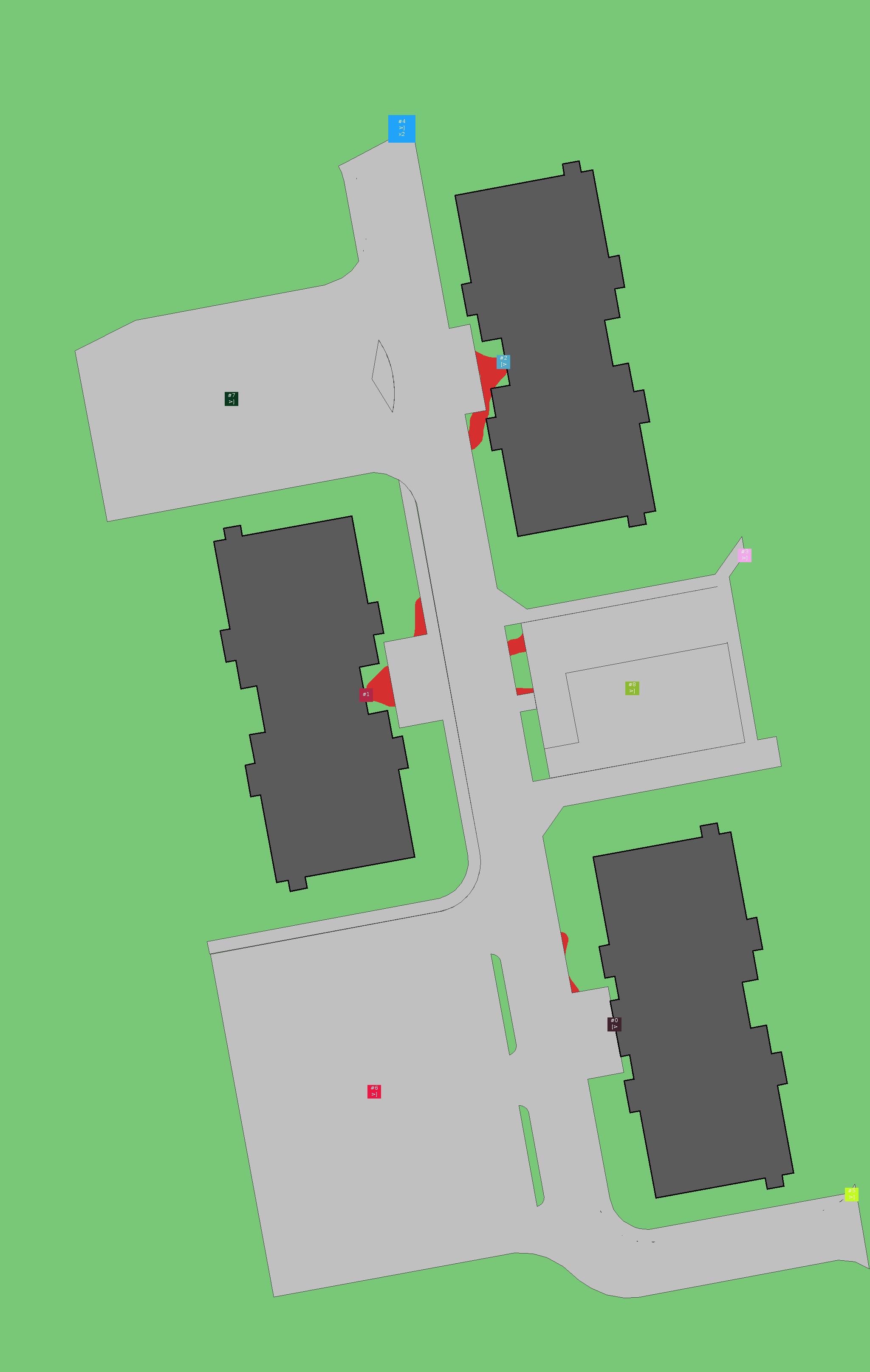 Красным цветом показаны места, где, вероятнее всего, появятся стихийные тропы..