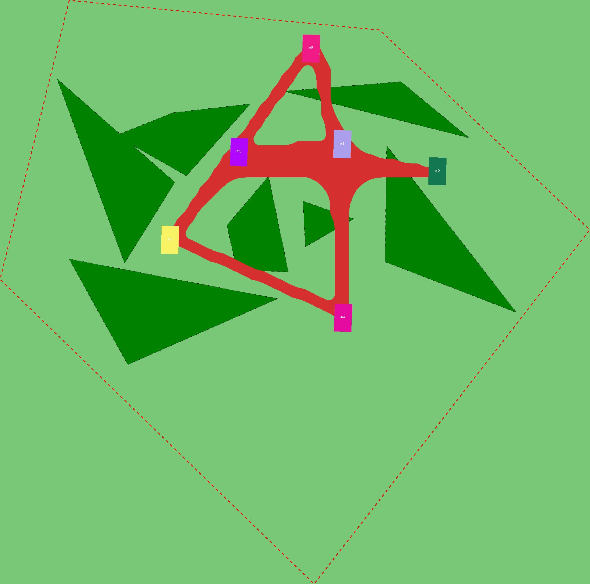 Красным цветом показаны места, где, вероятнее всего, появятся стихийные тропы..