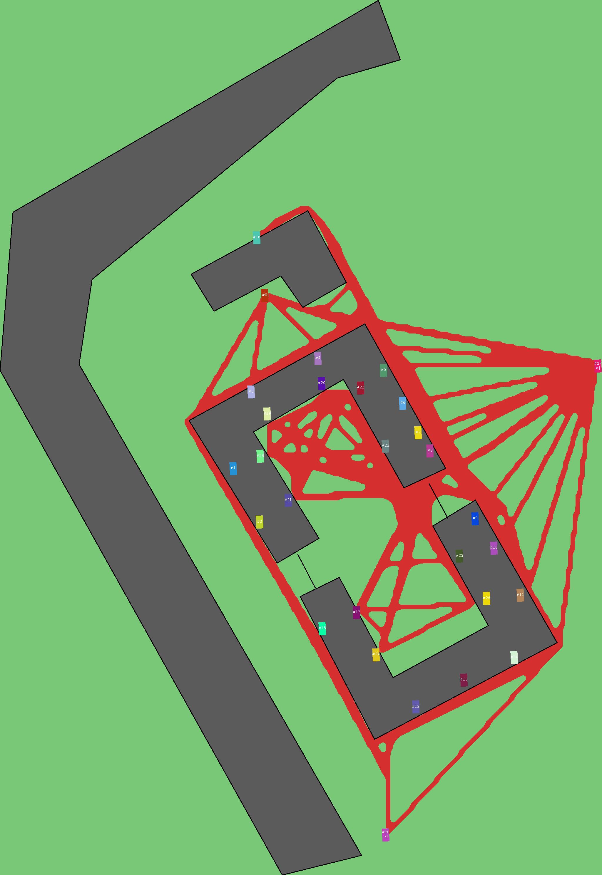 Красным цветом показаны места, где, вероятнее всего, появятся стихийные тропы..