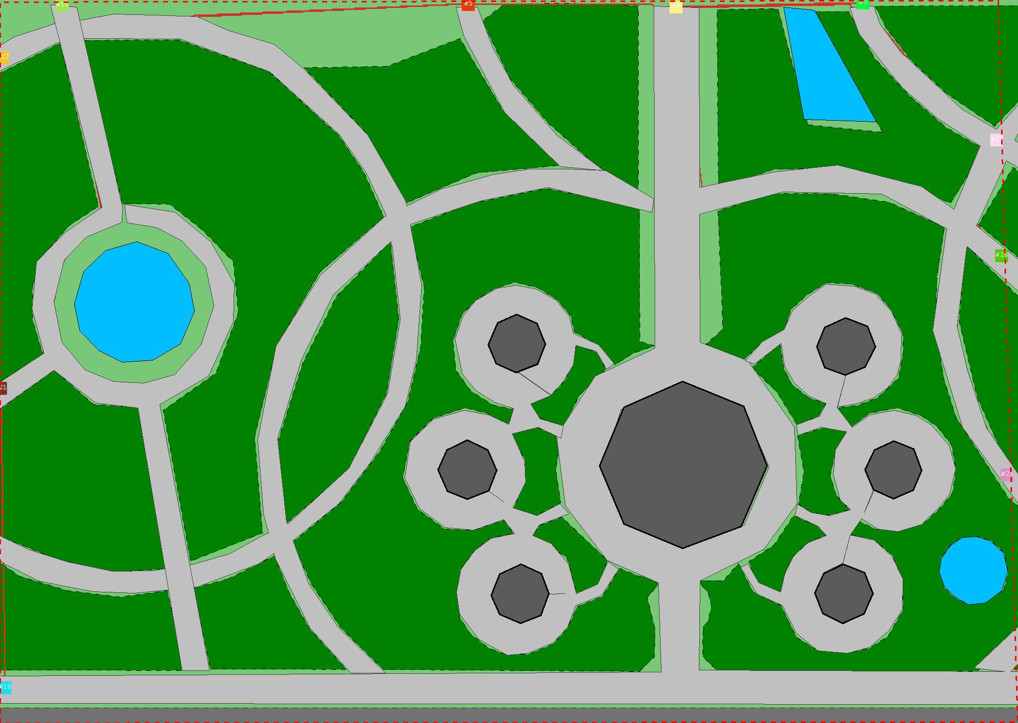 Красным цветом показаны места, где, вероятнее всего, появятся стихийные тропы..