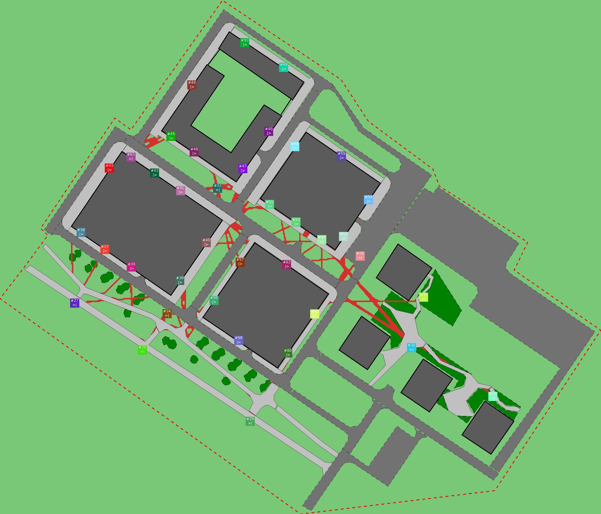 Красным цветом показаны места, где, вероятнее всего, появятся стихийные тропы..
