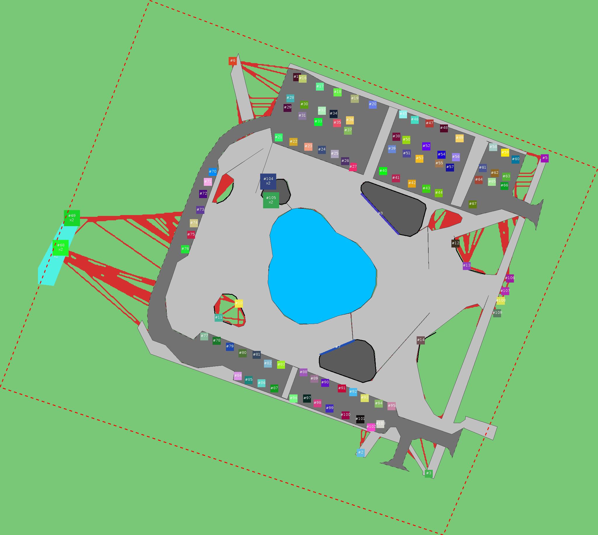 Красным цветом показаны места, где, вероятнее всего, появятся стихийные тропы..