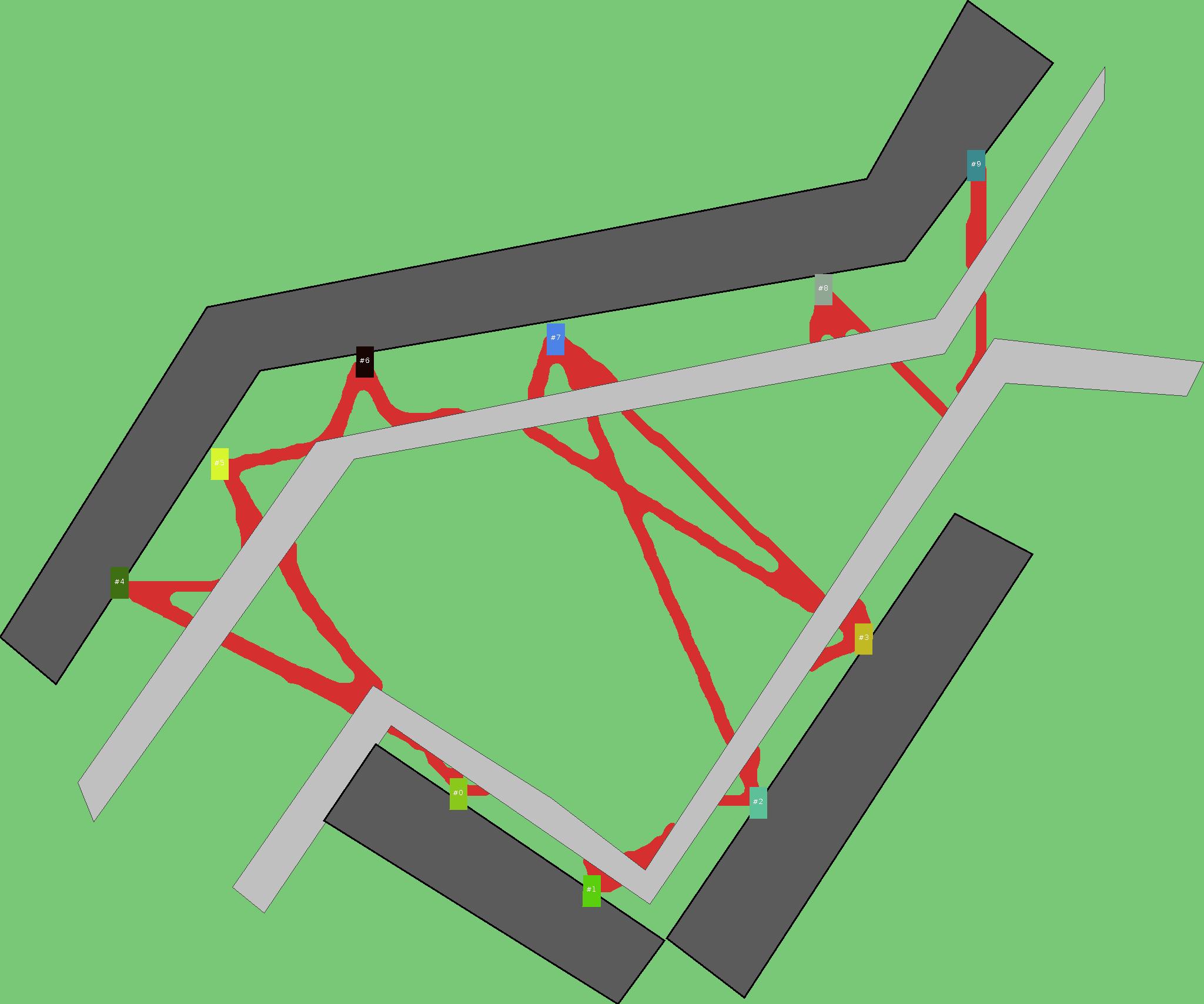 Красным цветом показаны места, где, вероятнее всего, появятся стихийные тропы..