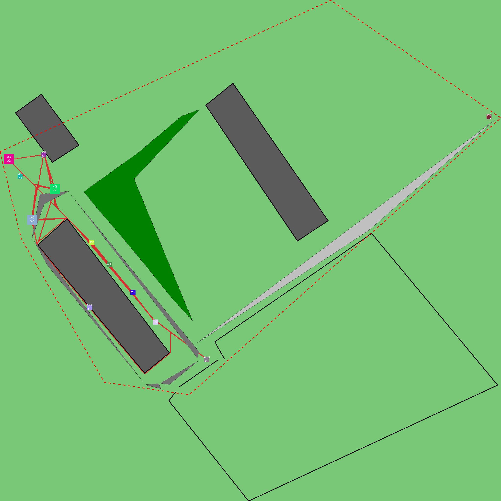Красным цветом показаны места, где, вероятнее всего, появятся стихийные тропы..