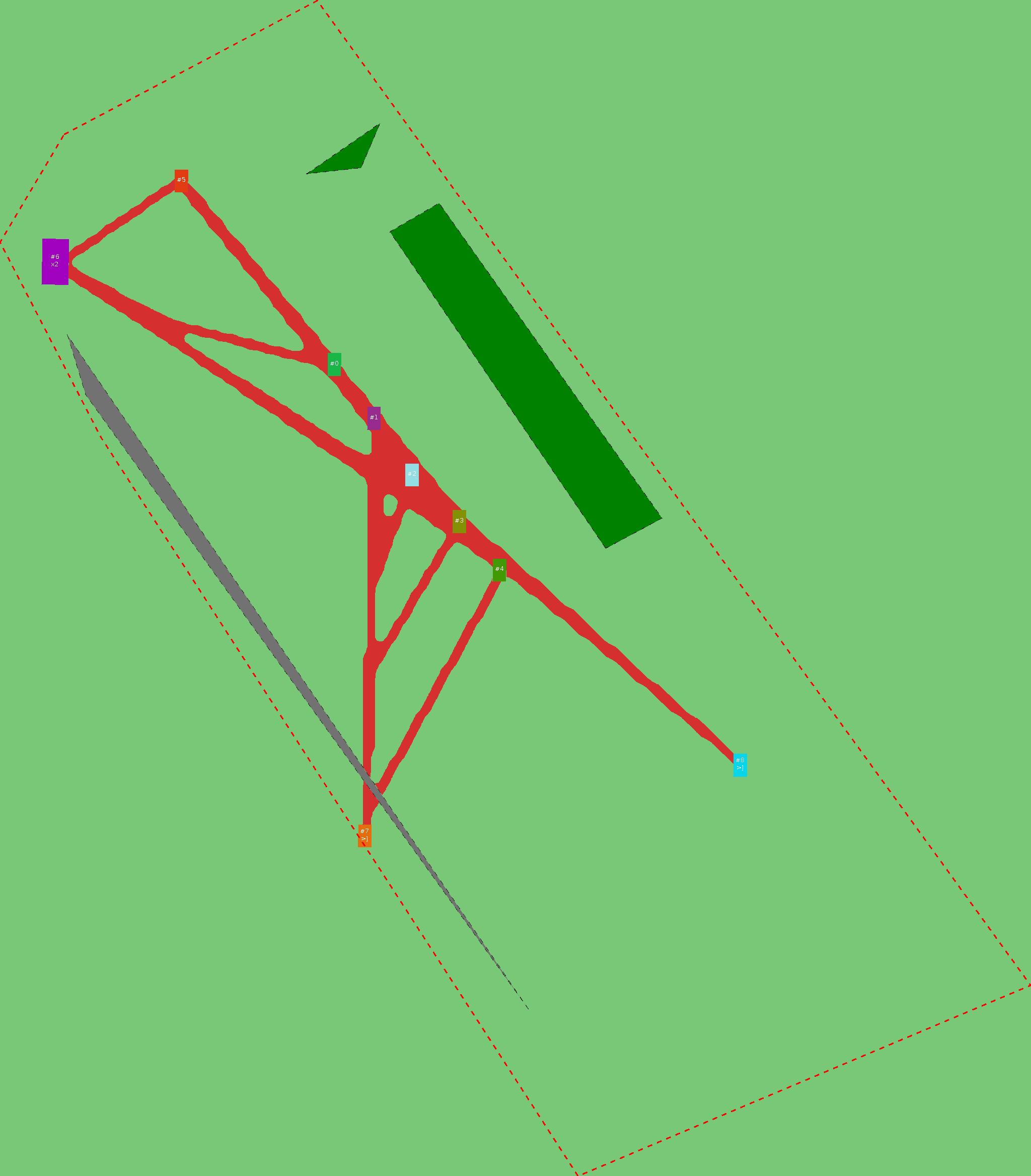 Красным цветом показаны места, где, вероятнее всего, появятся стихийные тропы..