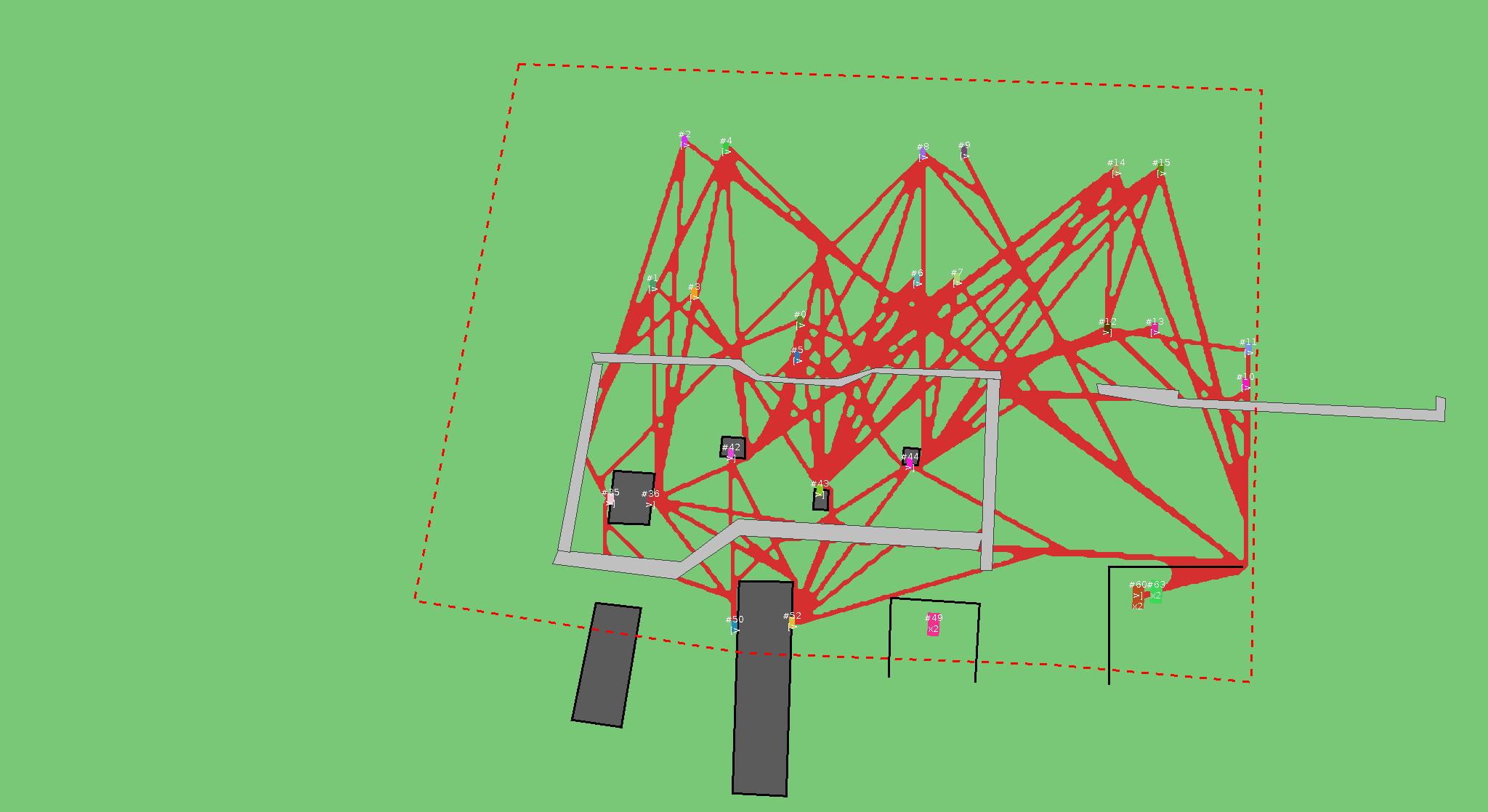 Красным цветом показаны места, где, вероятнее всего, появятся стихийные тропы..