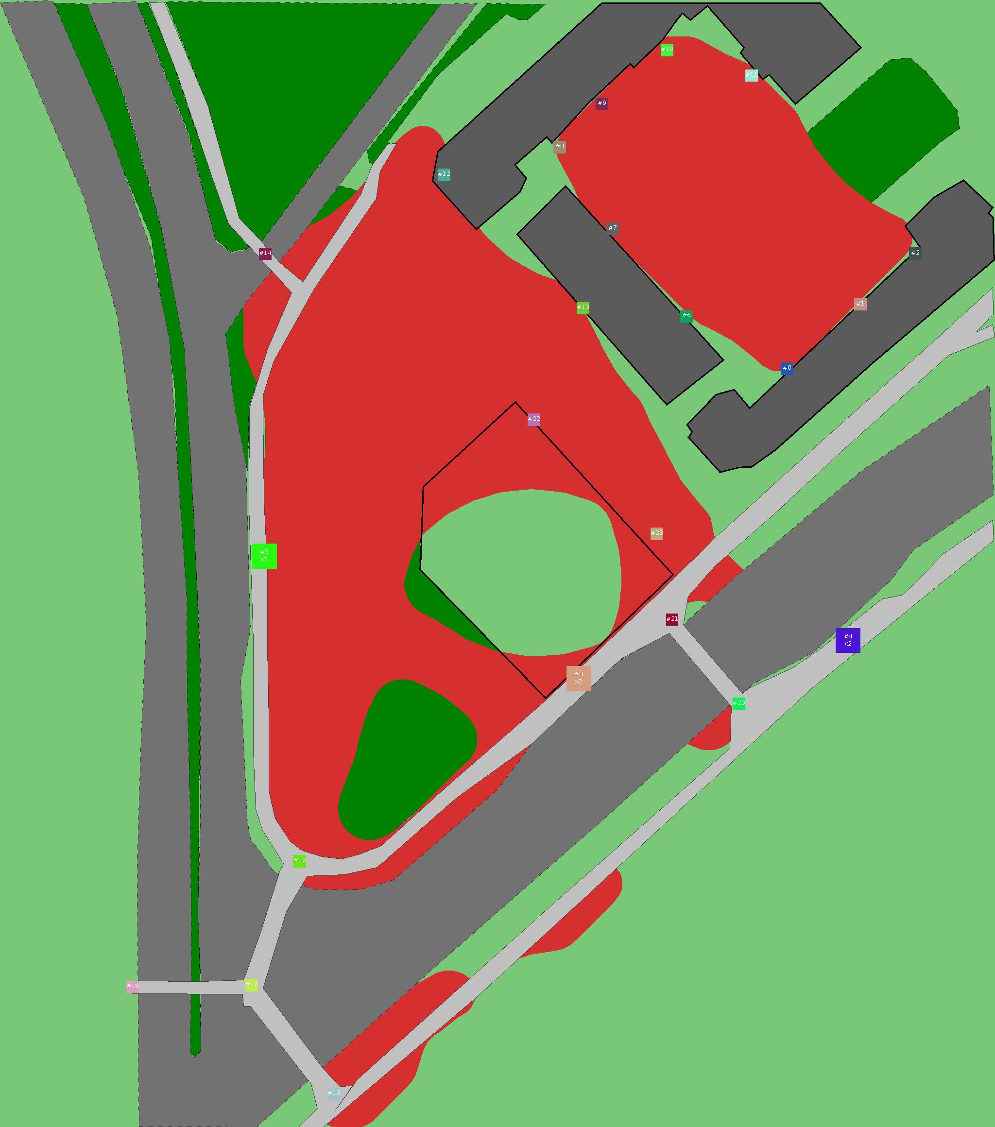 Красным цветом показаны места, где, вероятнее всего, появятся стихийные тропы..