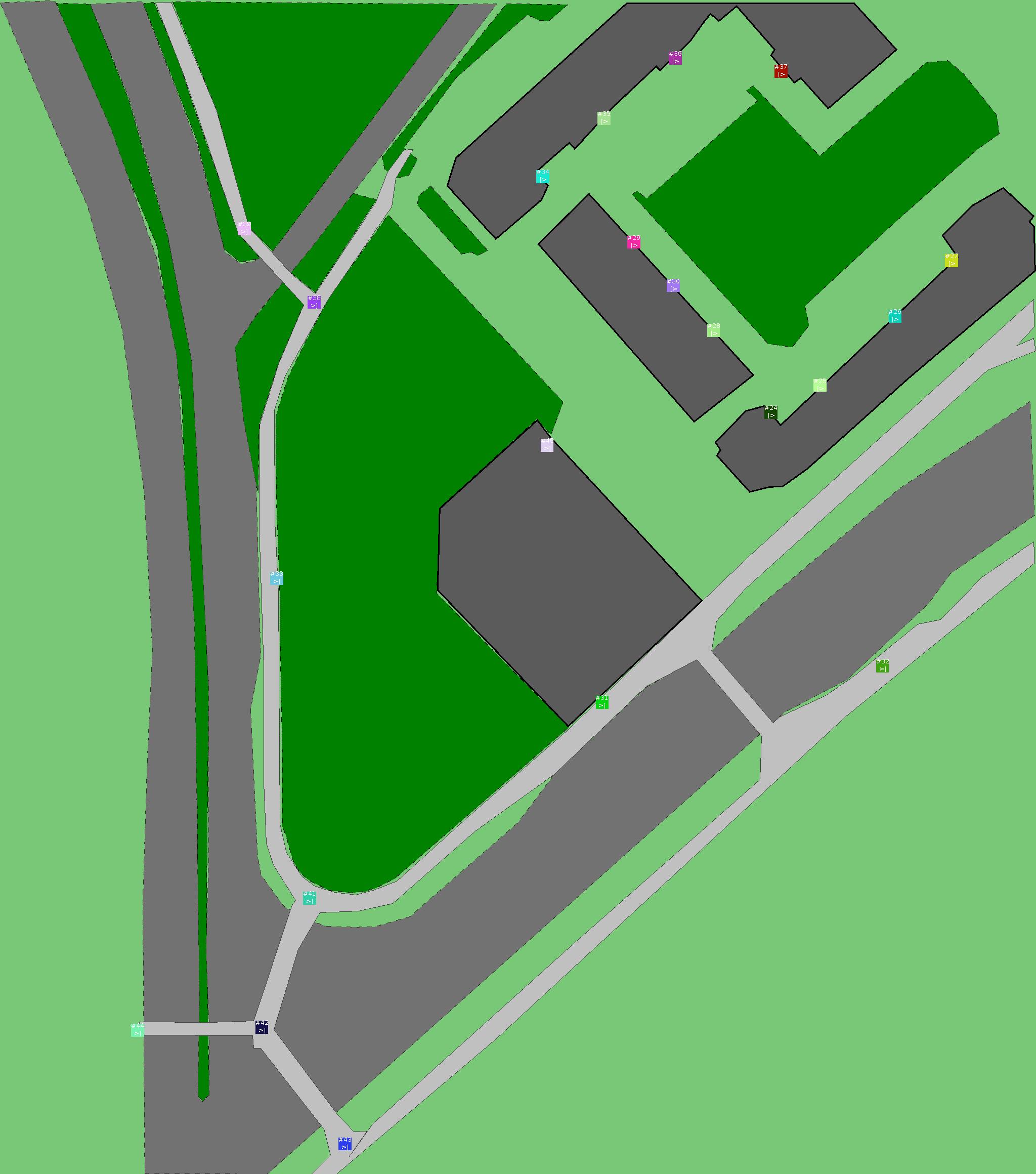 Красным цветом показаны места, где, вероятнее всего, появятся стихийные тропы..