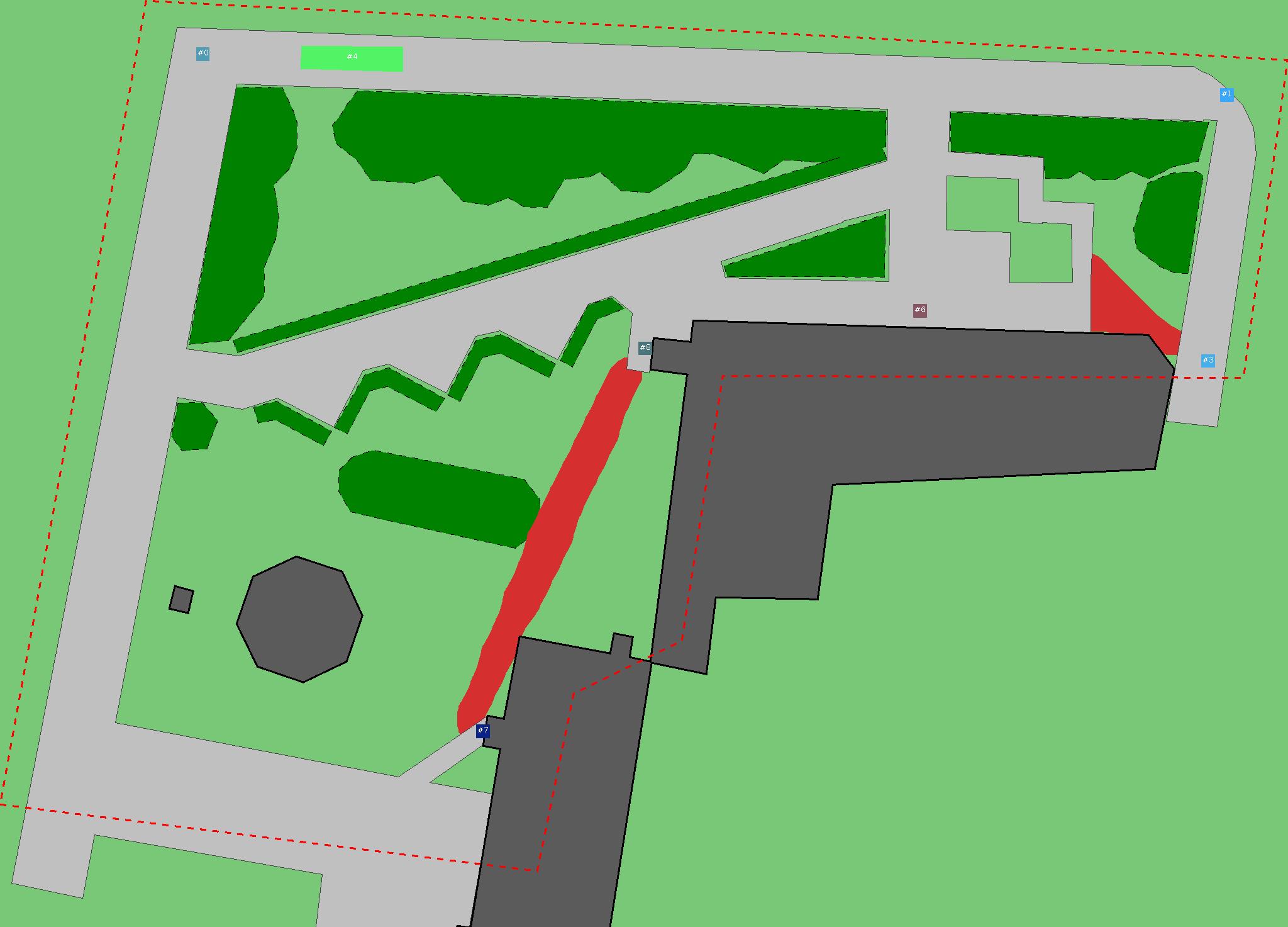 Красным цветом показаны места, где, вероятнее всего, появятся стихийные тропы..