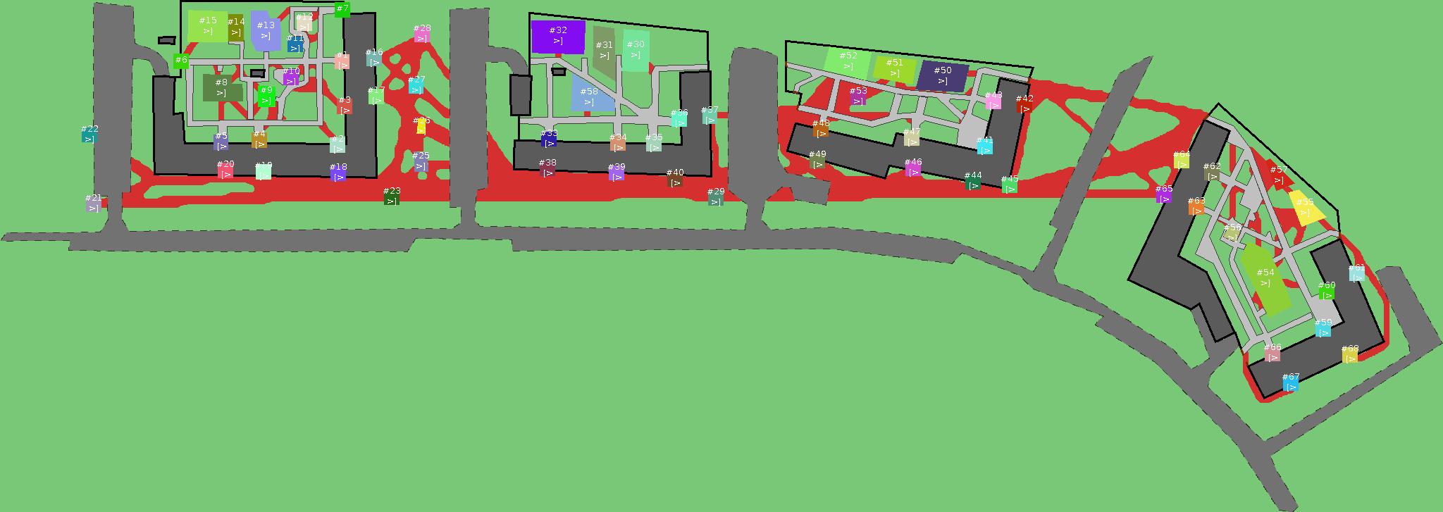 Красным цветом показаны места, где, вероятнее всего, появятся стихийные тропы..