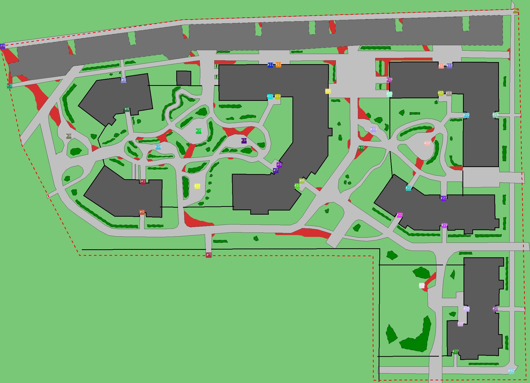 Красным цветом показаны места, где, вероятнее всего, появятся стихийные тропы..