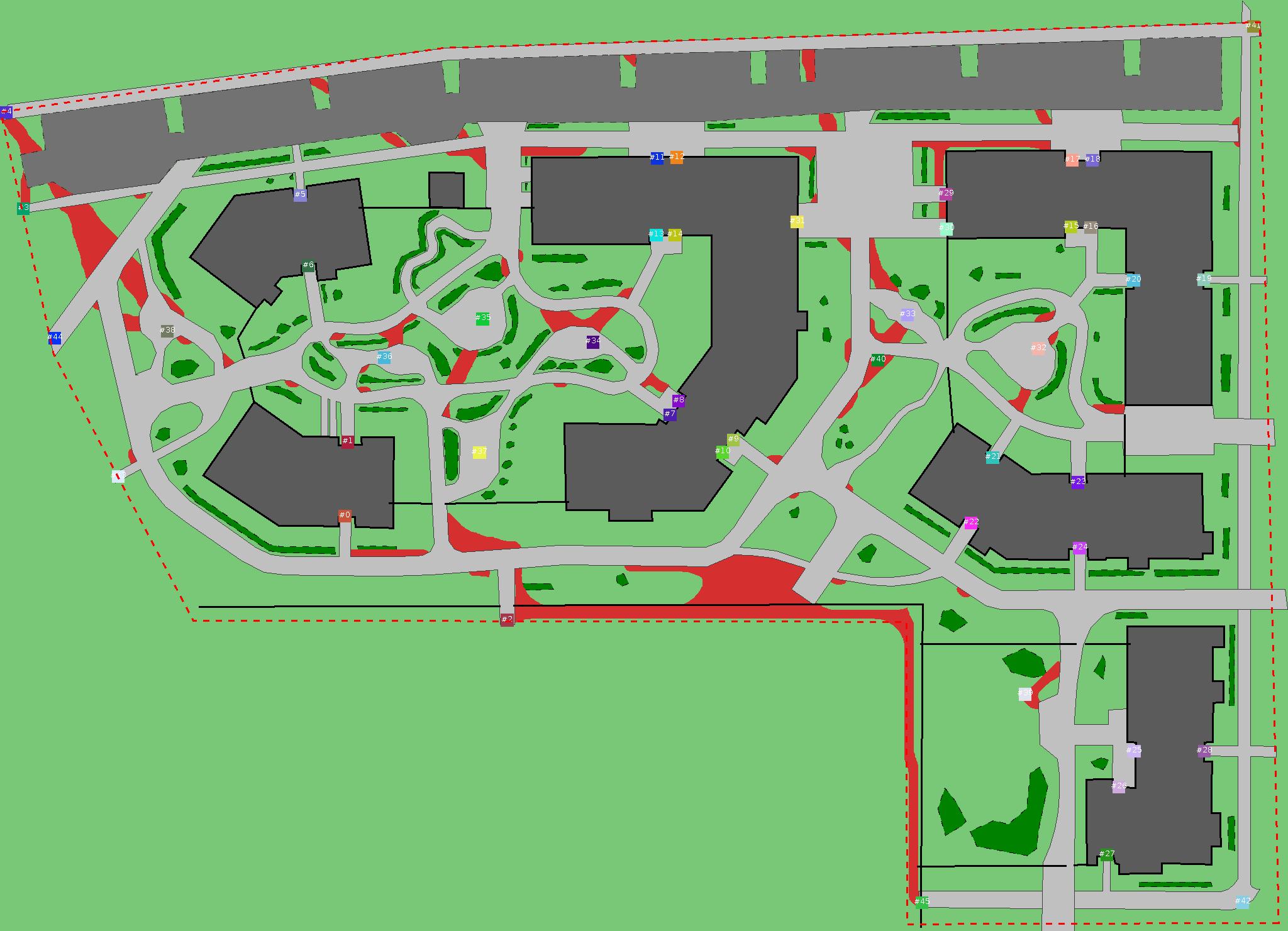 Красным цветом показаны места, где, вероятнее всего, появятся стихийные тропы..