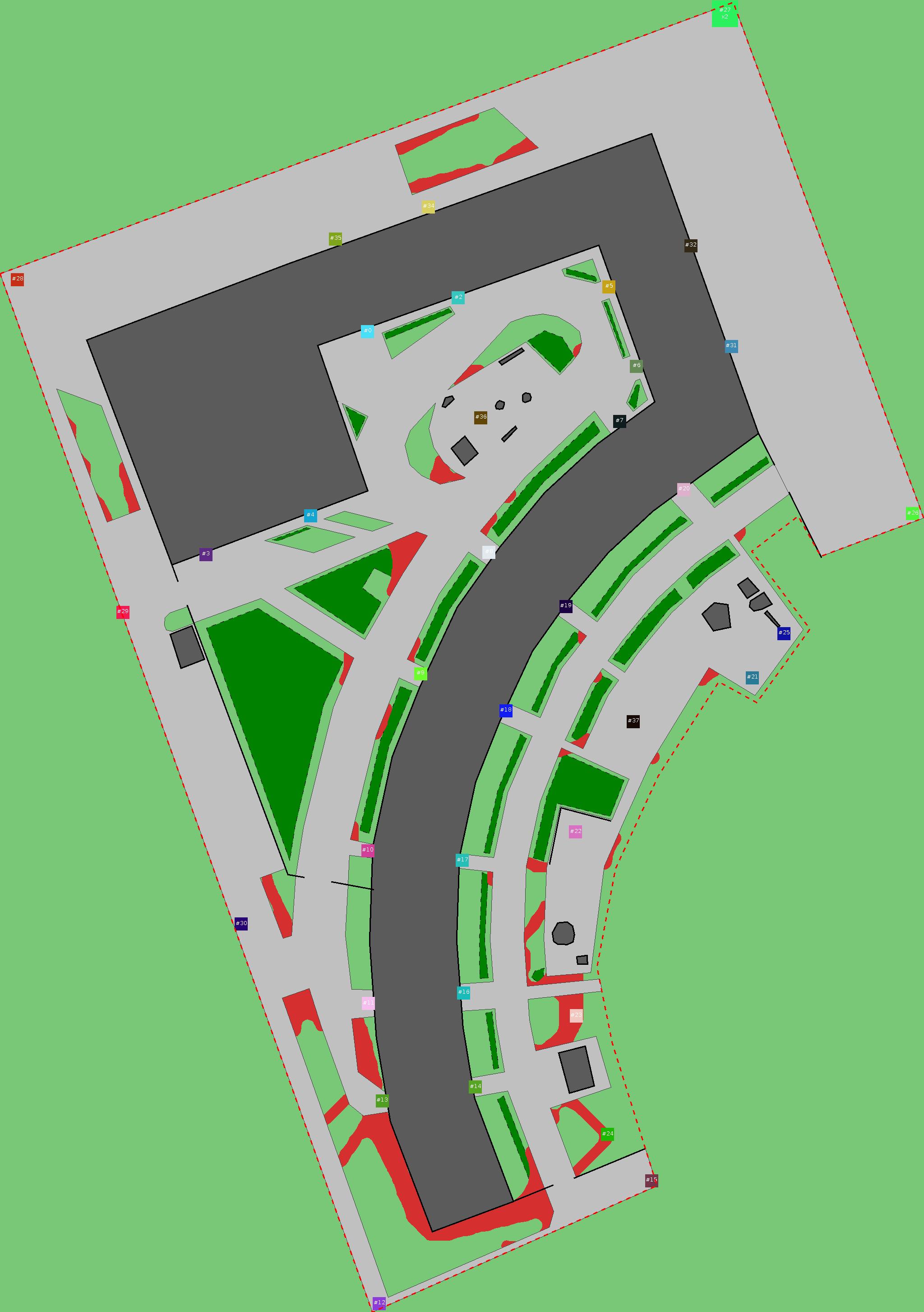 Красным цветом показаны места, где, вероятнее всего, появятся стихийные тропы..