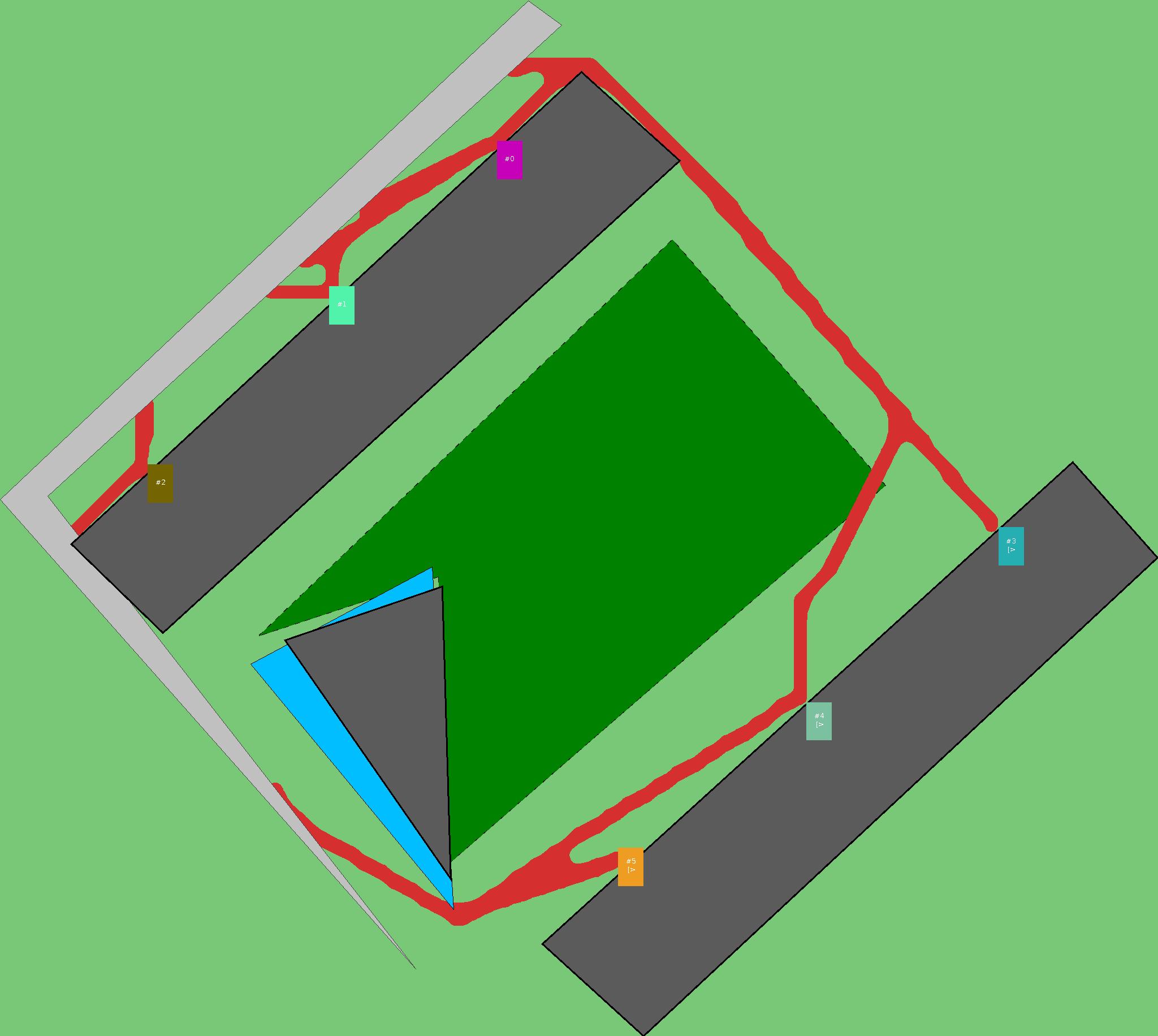 Красным цветом показаны места, где, вероятнее всего, появятся стихийные тропы..