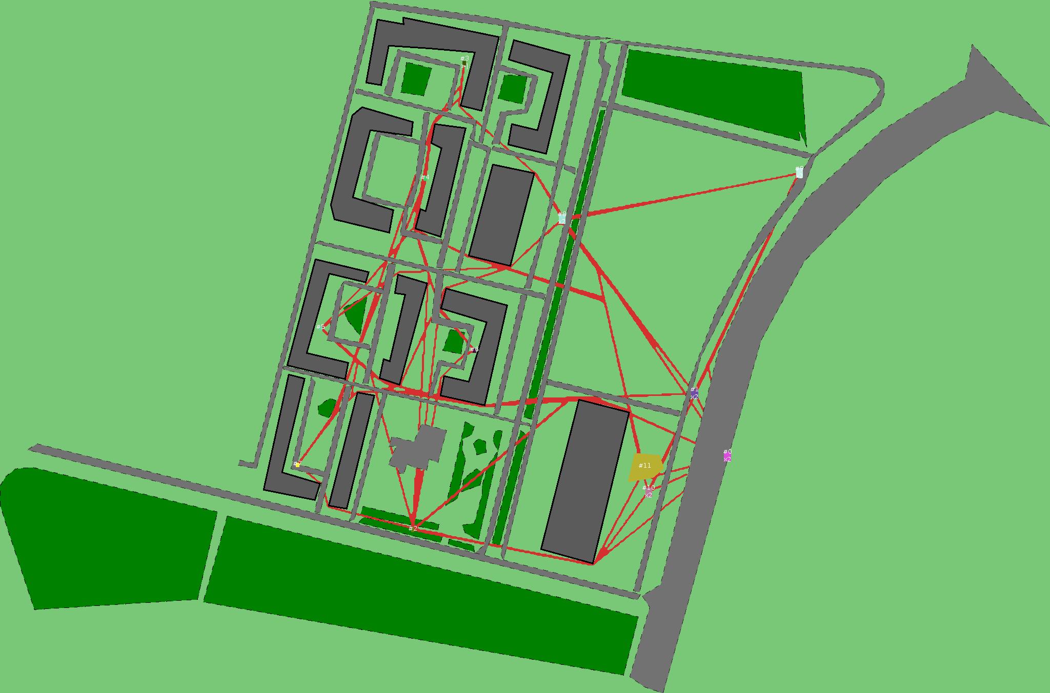 Красным цветом показаны места, где, вероятнее всего, появятся стихийные тропы..