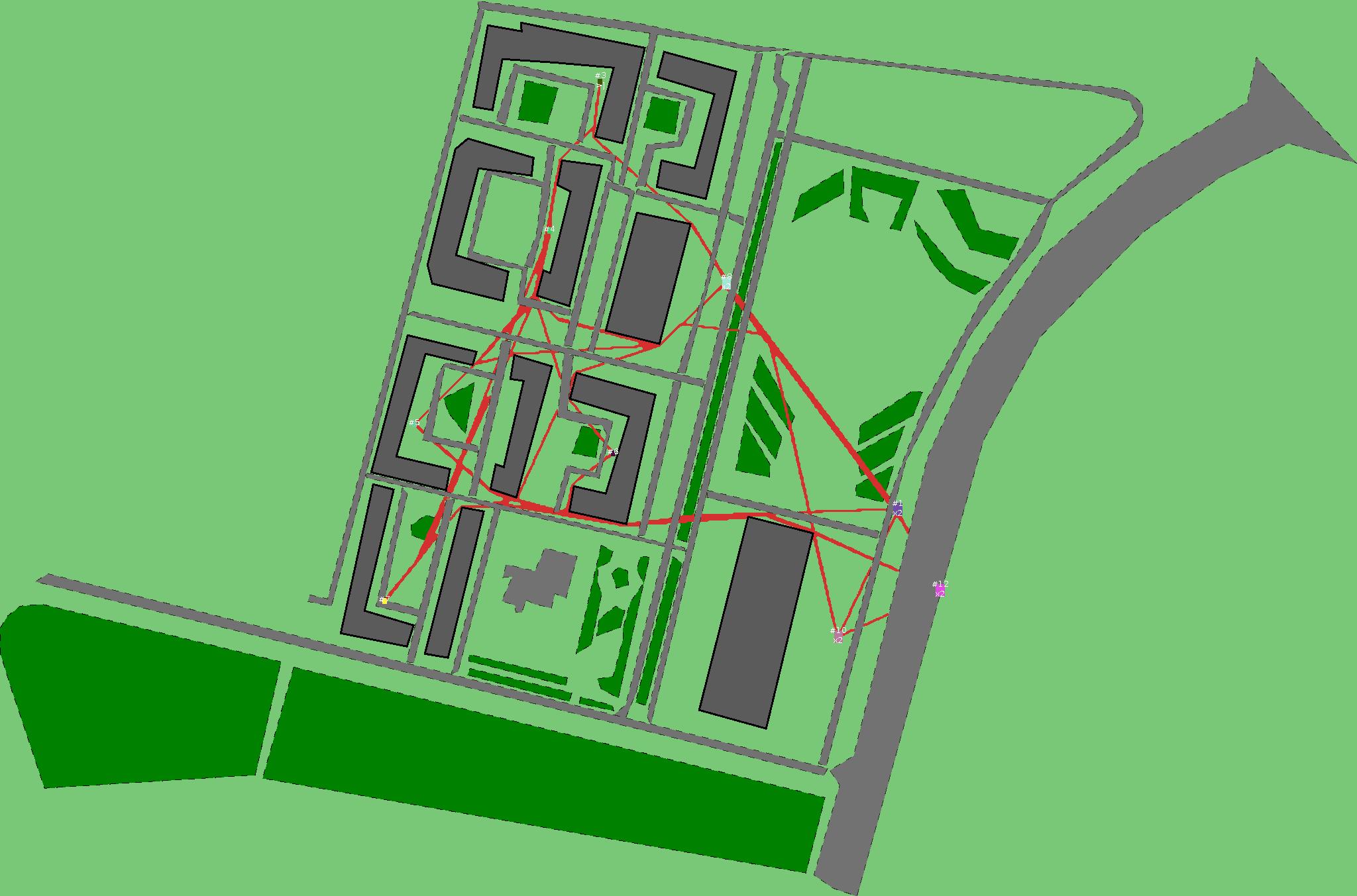 Красным цветом показаны места, где, вероятнее всего, появятся стихийные тропы..