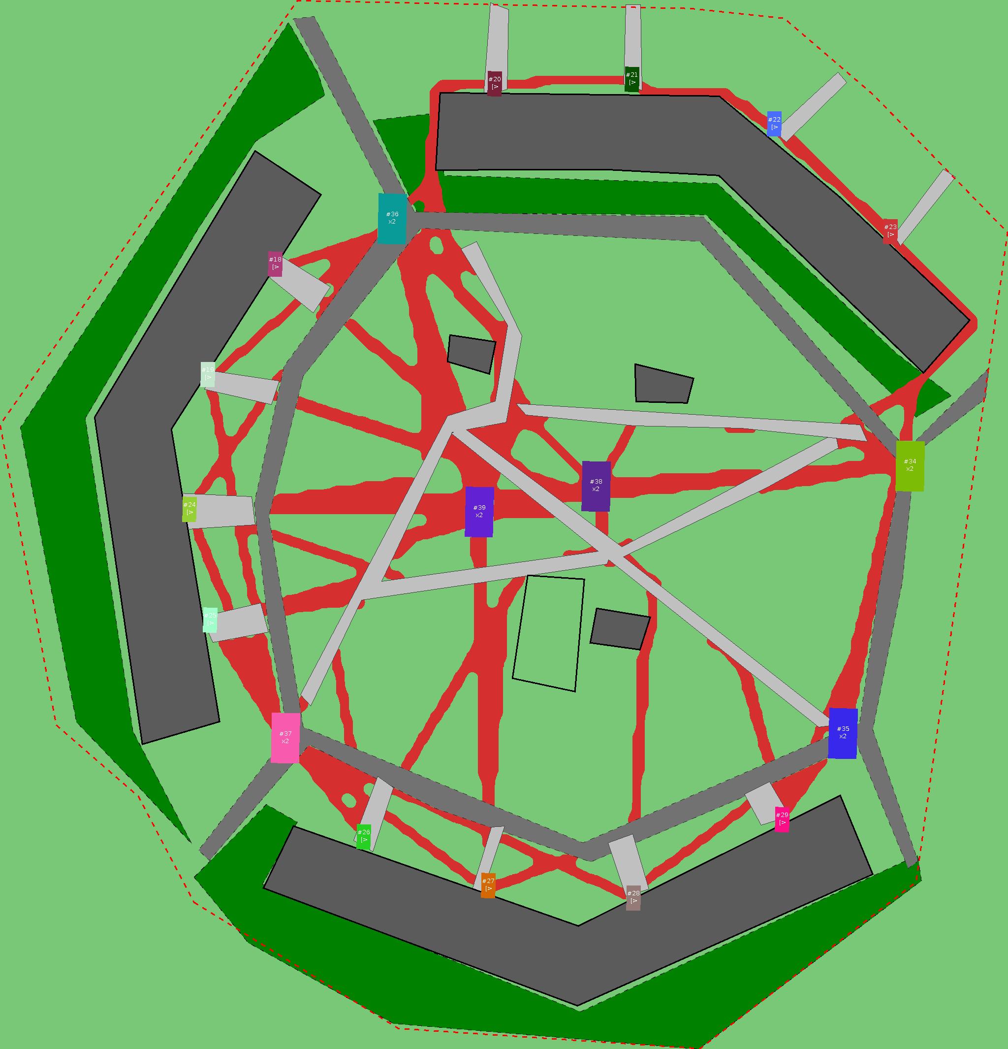 Красным цветом показаны места, где, вероятнее всего, появятся стихийные тропы..