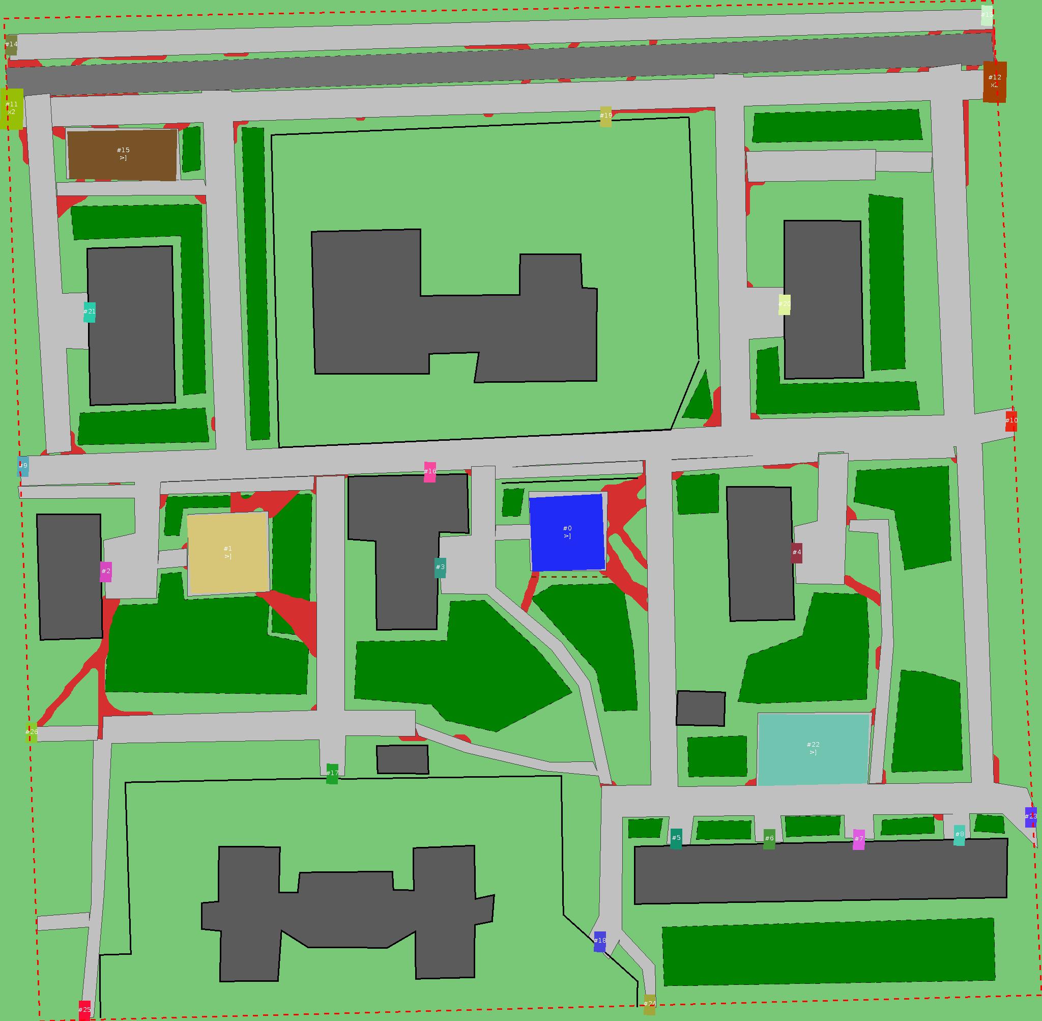 Красным цветом показаны места, где, вероятнее всего, появятся стихийные тропы..