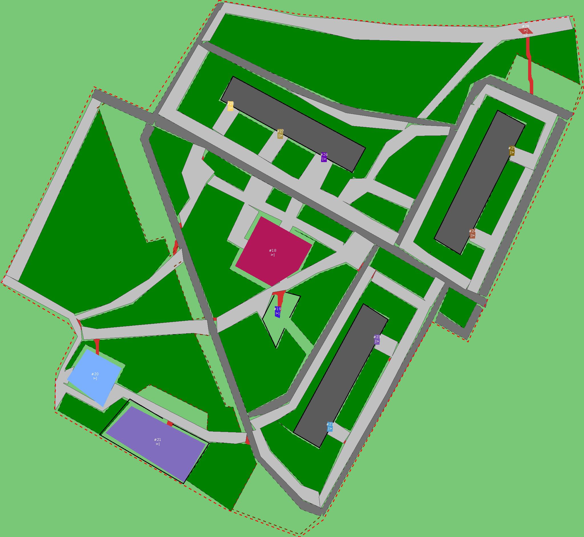 Красным цветом показаны места, где, вероятнее всего, появятся стихийные тропы..