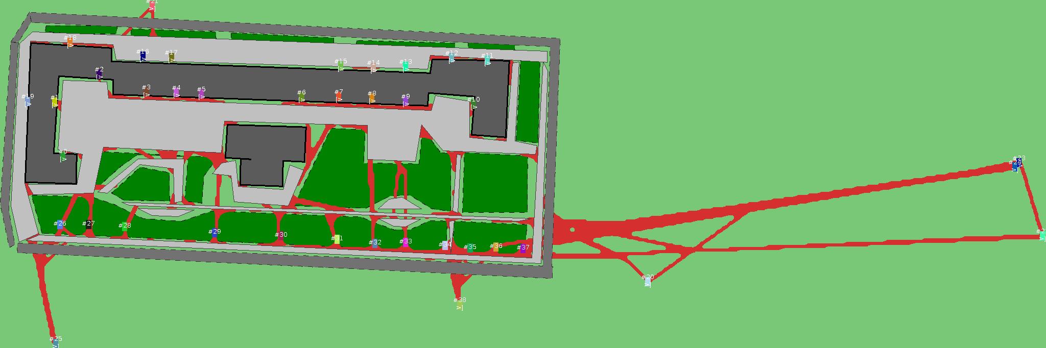 Красным цветом показаны места, где, вероятнее всего, появятся стихийные тропы..