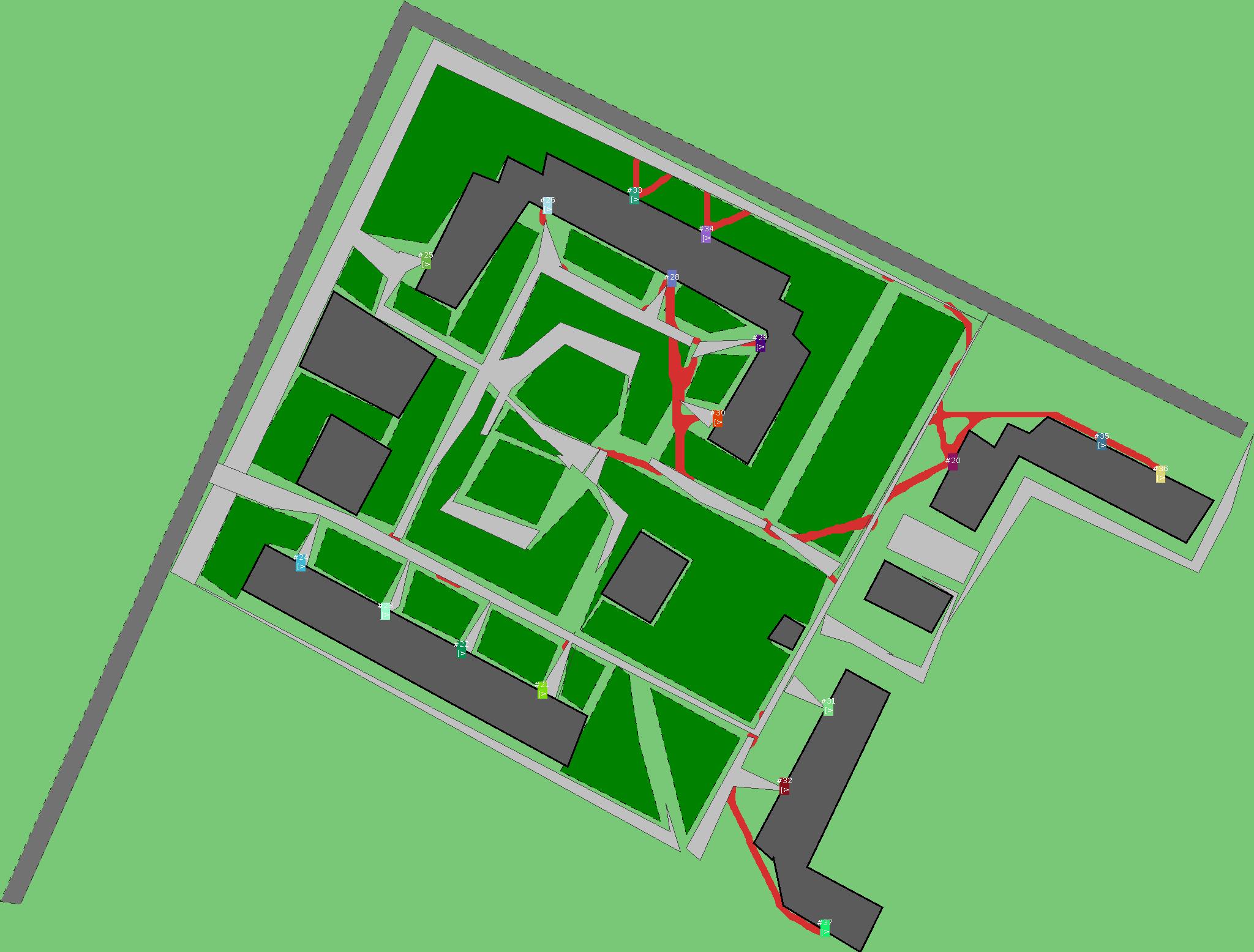 Красным цветом показаны места, где, вероятнее всего, появятся стихийные тропы..