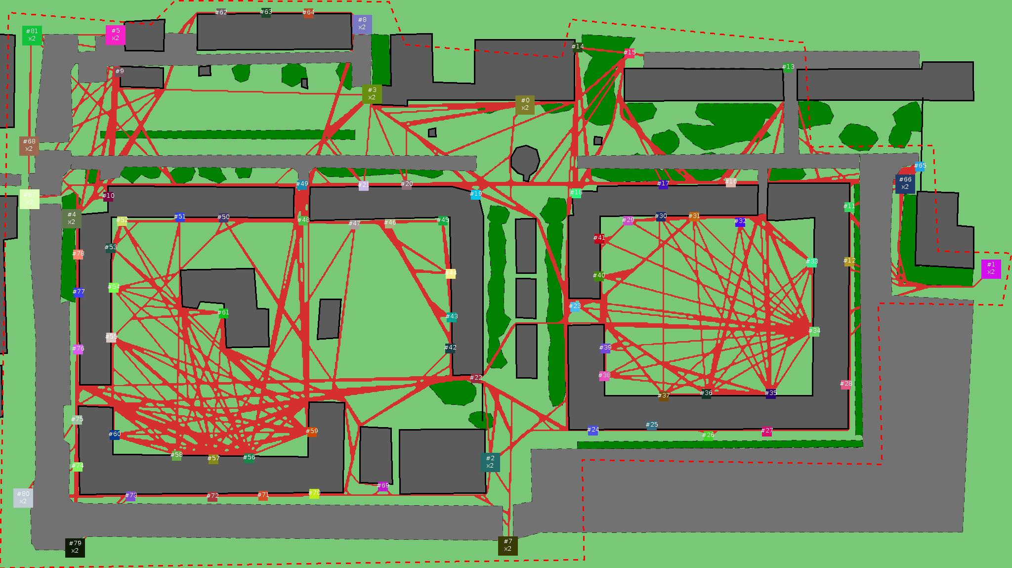 Красным цветом показаны места, где, вероятнее всего, появятся стихийные тропы..