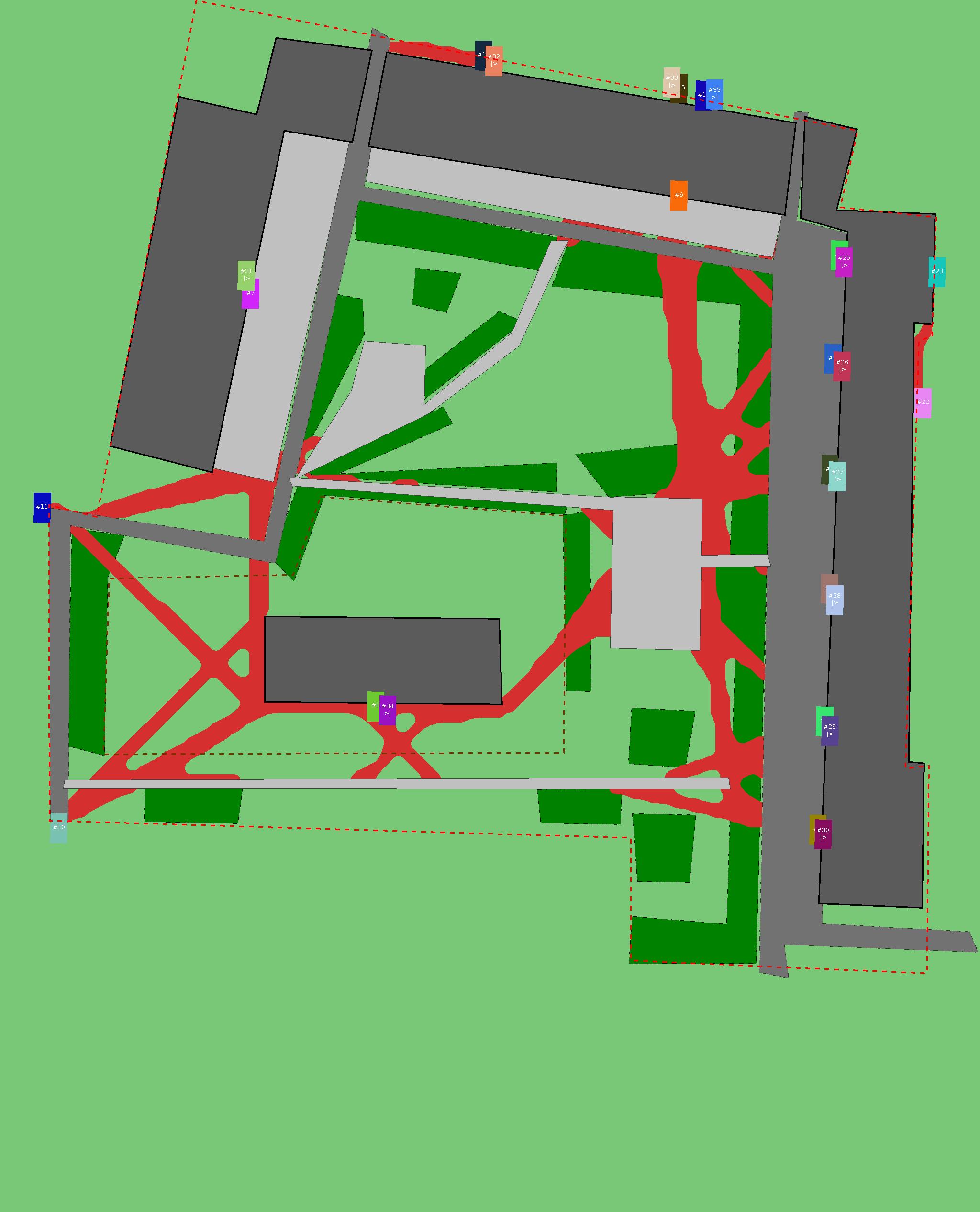 Красным цветом показаны места, где, вероятнее всего, появятся стихийные тропы..