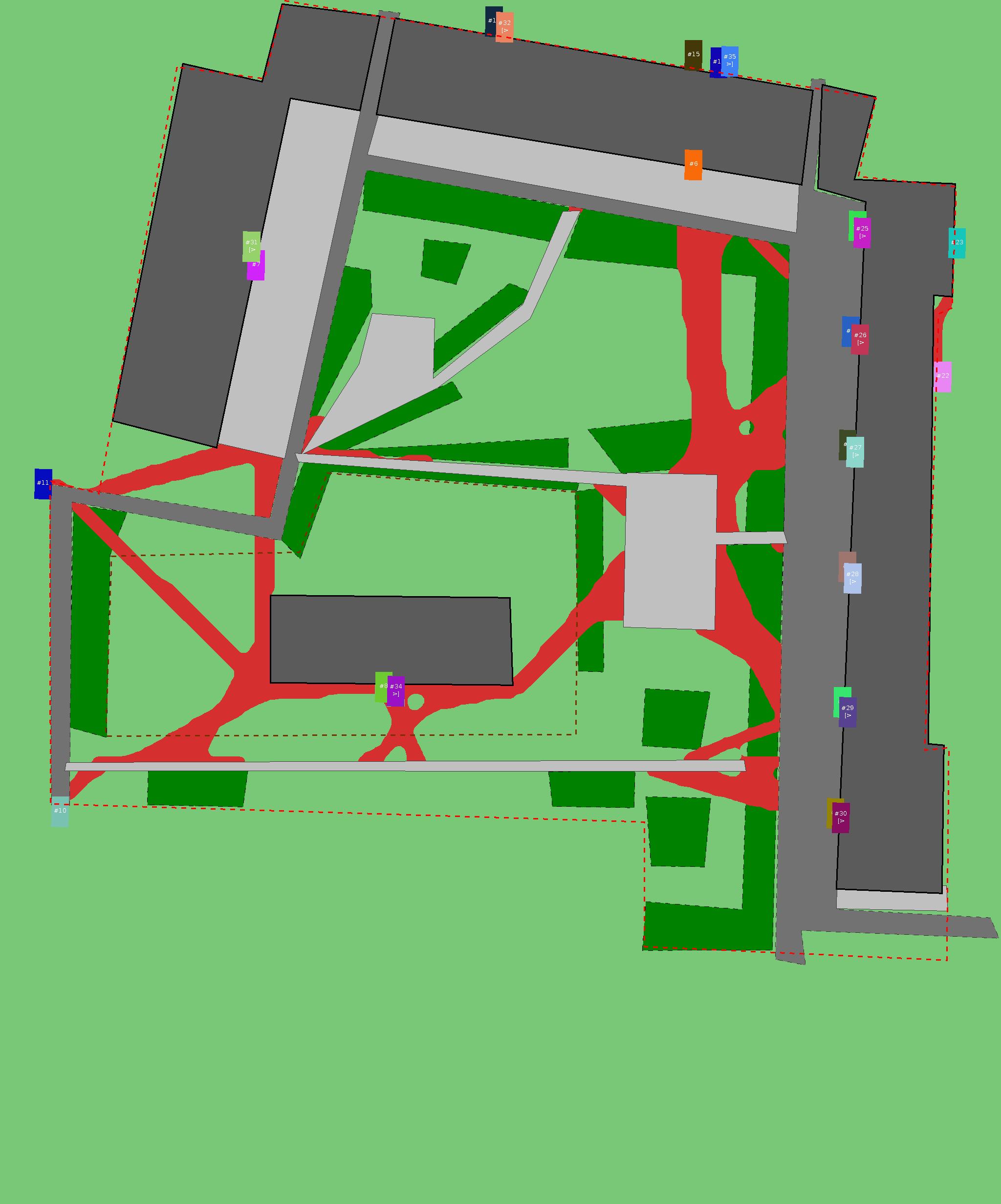 Красным цветом показаны места, где, вероятнее всего, появятся стихийные тропы..