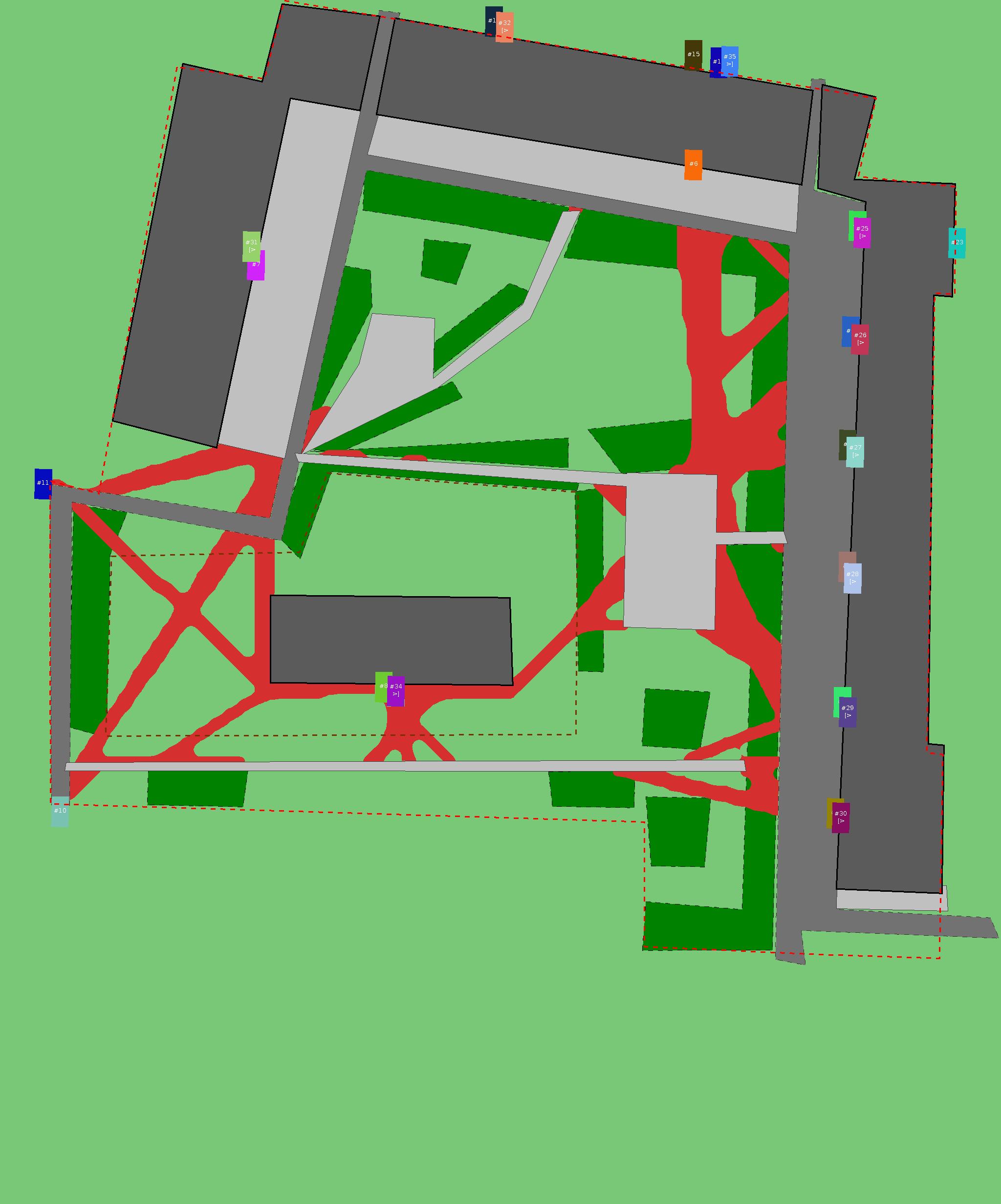 Красным цветом показаны места, где, вероятнее всего, появятся стихийные тропы..